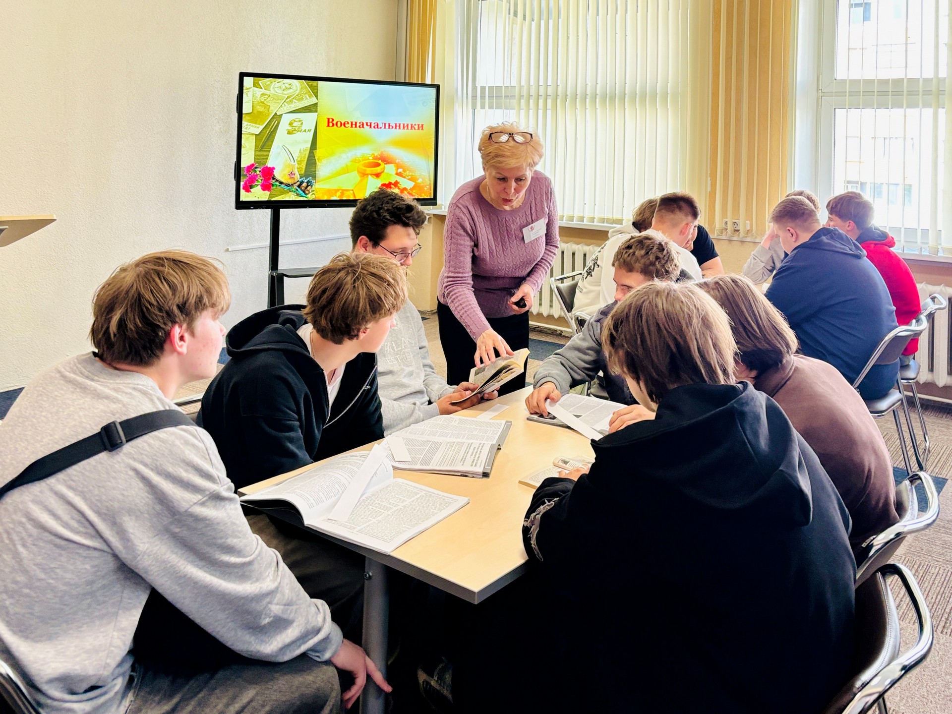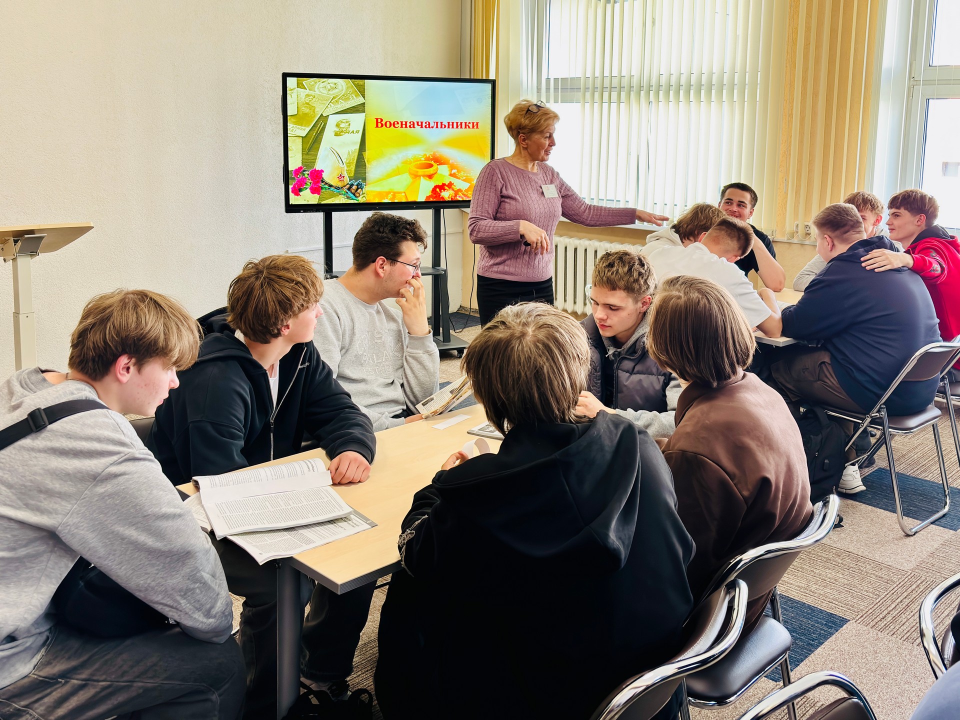 22 апреля 2026 г. в отделе периодических изданий Брестской областной библиотеки им. М. Горького для учащихся колледжа приборостроения состоялся поисково-познавательный практикум «Белорусские имена Победы. Военачальники». Мероприятие, приуроченное к приближающемуся празднику Великой Победы, позволило молодым людям глубже познакомиться с героическими страницами истории и узнать о выдающихся военачальниках — уроженцах Беларуси, который внесли неоценимый вклад в Победу в Великой Отечественной войне.