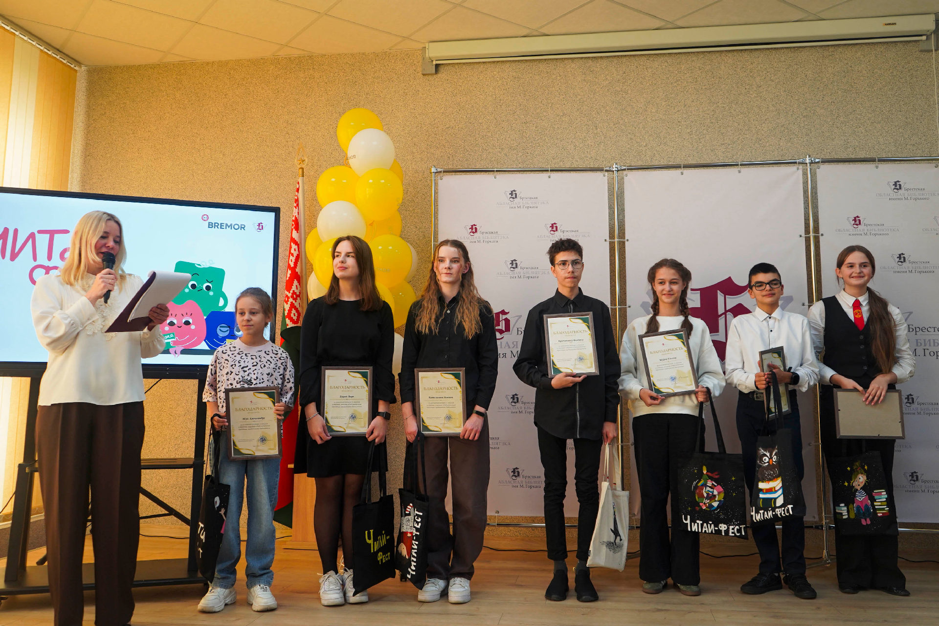 Десятка лучших читателей проекта удостоена Дипломами и памятными подарками от компании BREMOR. Среди них Бутько Александр, Шуман Лея, Свярук Дарья, Денисюк Александра, Митюков Степан, Озарчук Елизавета и Денисюк Анна. За лучший читательский дневник награждена Гницевич Валерия. Диплом победителя, умные часы и памятные подарки от компании BREMOR получила Бутько Виктория, которая за время проекта прочитала 295 книг. Диплом победителя, умная колонка Алиса и памятные подарки от компании BREMOR достались Мурза Ульяне (320 прочитанных книг). Диплом победителя и главный приз — велосипед — за целеустремлённость, волю к победе и 333 прочитанные книги получила Денисюк София. Поздравляем победителей!