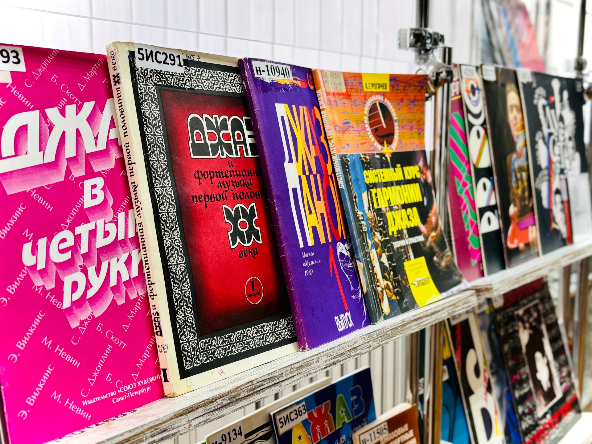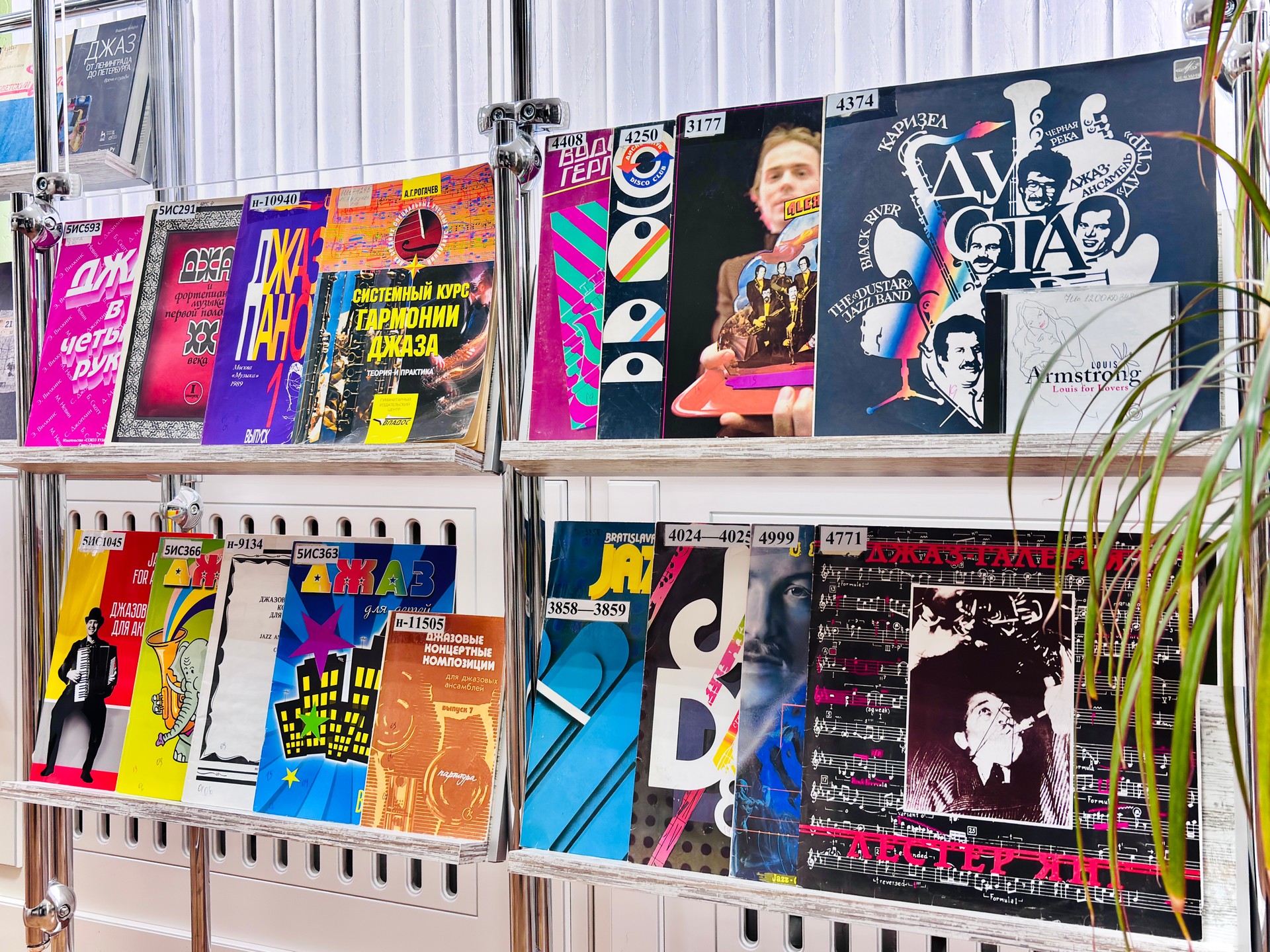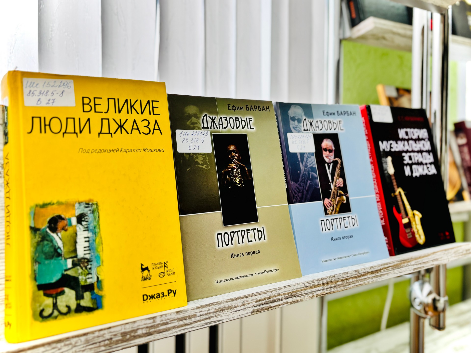 В экспозиции представлены книги, открытки, грамзаписи, периодические издания, которые освещают историю джаза, его развитие и судьбы музыкантов, с акцентом на творчество О. Л. Лундстрема. Заинтересует издание «Советский джаз. Проблемы. События. Мастера» (Москва, 1987). Сборник охватывает период 1970 – начало 1980-х годов и состоит из четырёх разделов. В первом — высказывания о джазе видных композиторов. Во втором помещены теоретические статьи, в третьем — статьи об отдельных исполнителях и коллективах. В конце — дискография, рецензии на книги о джазе и словарь терминов. Интерес представляет фундаментальное двухтомное исследование под редакцией Кирилла Мошкова и Александры Филипьевой «Российский джаз» (Санкт-Петербург, 2013). Первый том посвящён истории и развитию джаза в России. Второй том включает биографии, анализ стилей, интервью и материалы о ключевых событиях.