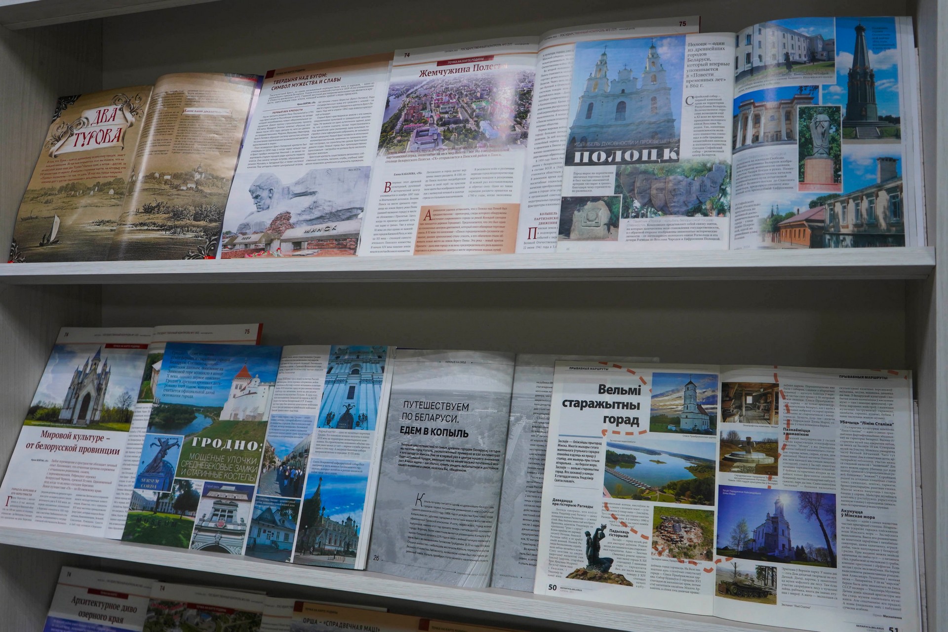 На экспозиции представлены материалы из различных периодических изданий, посвящённых архитектурным памятниках, историческим местам и древним городам Беларуси. Здесь можно найти статьи о храмах, костёлах, усадьбах и замках.