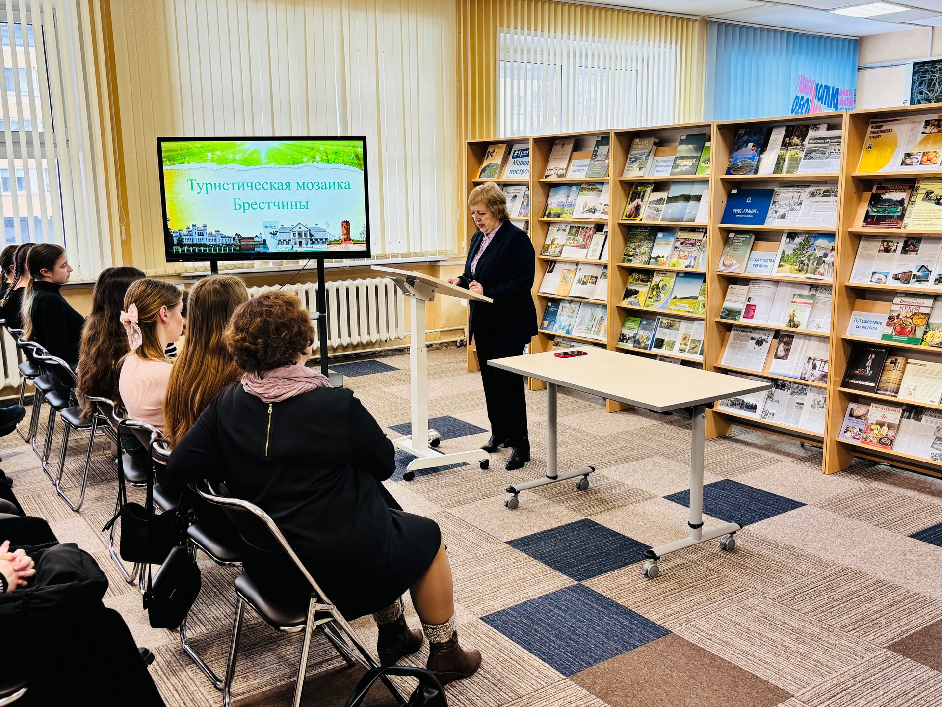 18 и 19 февраля 2026 года занятие «Туристическая мозаика Брестчины» прошло для учащихся Брестского государственного колледжа приборостроения и студентов БрГУ им. А. С. Пушкина. Заведующий общим читальным залом Тамара Васильевна Глазкова представила участникам встреч выставку «Брестский регион. Маршрут построен». Экспозиция включила разнообразные книжные издания, публикации из периодики и фотодокументы, которые детально освещают историческое, природное и культурное богатство Брестской области, возрождённое усилиями государства и общества.