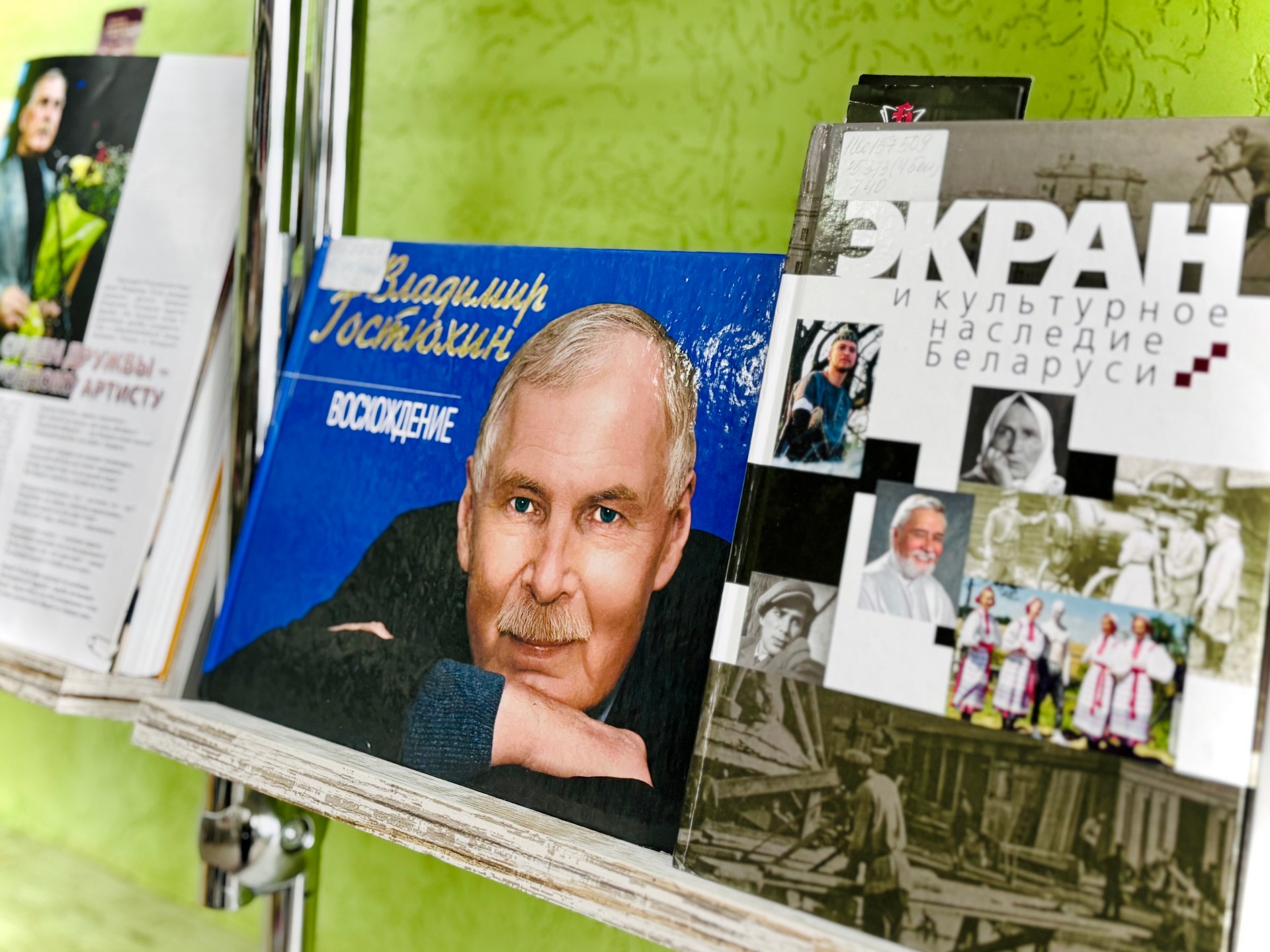 В экспозиции представлены книги, периодические издания, которые знакомят с жизнью и творчеством актёра. Издание Марины Александровны Тарасовой «Владимир Гостюхин» (Москва, 1983) — это небольшой очерк о творчестве известного актёра Владимира Гостюхина. Книга «Восхождение» (Минск, 2007) В. Гостюхина представляет собой фотоальбом, где собраны фотографии и воспоминания актёра, отражающие его жизненный и творческий путь. Это его взгляд на «восхождение» в профессию и жизнь, сочетание личных моментов и знаковых ролей.
