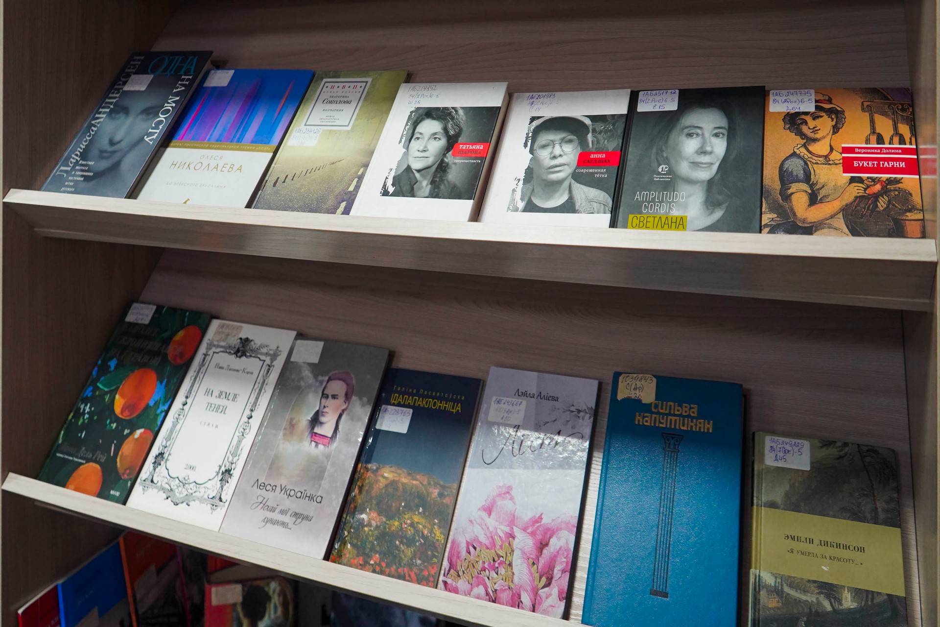Представлены также сборники российских авторов-женщин. Мирру Лохвицкую считают основоположницей русской женской поэзии ХХ века. Именно она проложила путь для Анны Ахматовой и Марины Цветаевой, которые уже вынесли творчество женщин-поэтесс на один уровень с мужчинами, открыли человечеству дверь в мир женской мудрости. Нашли своё — совершенно особенное — место сборники поэтесс военного поколения: Юлии Друниной, Ольги Берггольц, Вероники Тушновой. В шестидесятые годы прошлого столетия появились новые, очень яркие имена: Юнна Мориц, Белла Ахмадулина, Римма Казакова… Представлены и современные поэтессы, творчество которых не оставляет равнодушным. Среди них — Диана Арбенина, бессменный лидер группы «Ночные снайперы», поэт и музыкант. В сборник «Аутодафе» (Москва, 2012) она включила тексты своих песен и стихи разных лет.
