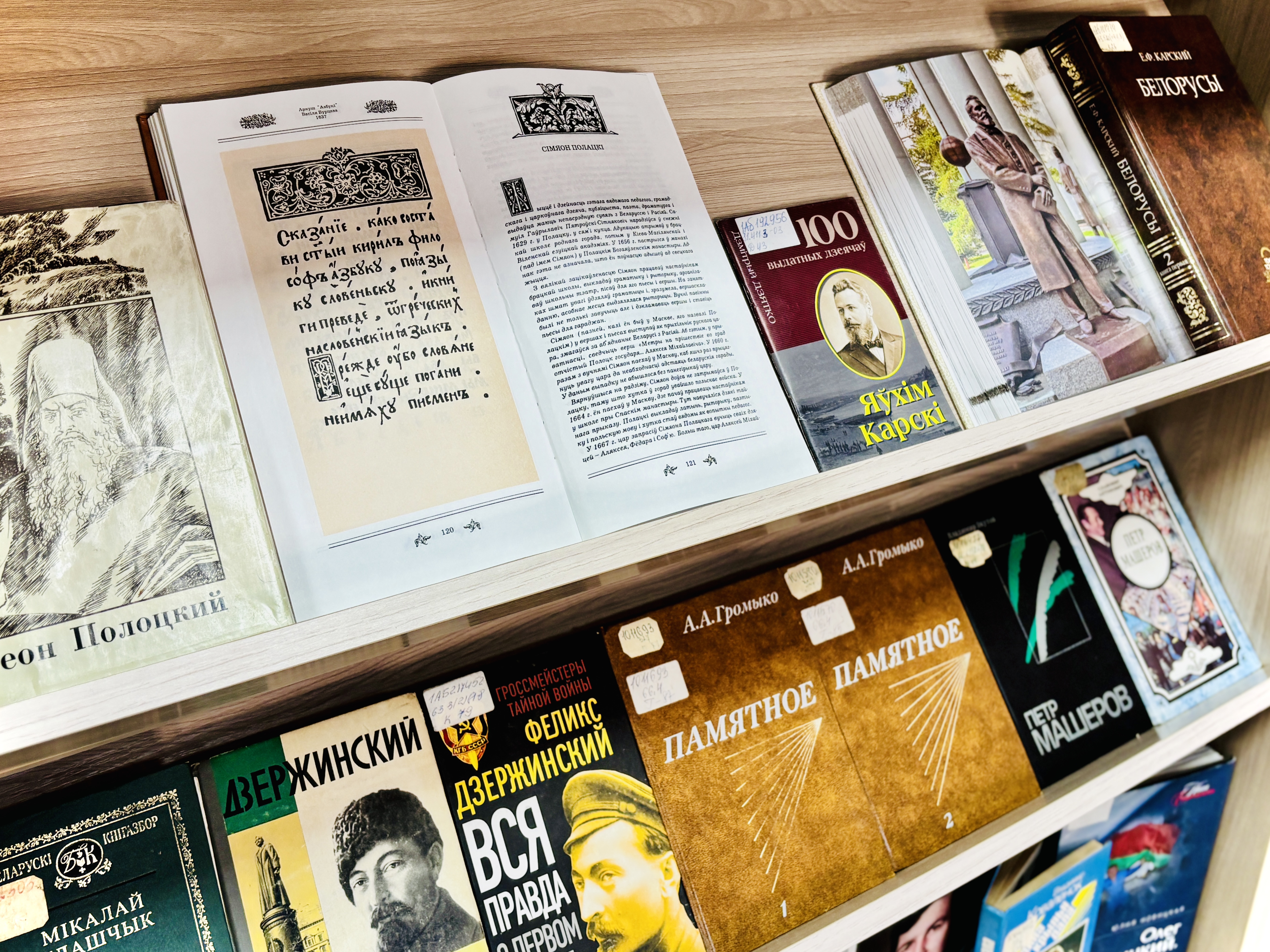 На экспозиции представлены издания, рассказывающие о славных именах нашей общей истории. Хронологические рамки — от Симеона Полоцкого, просветителя и поэта XVII века (Симеон Полоцкий «Вирши», Минск, 1990), до первого белорусского космонавта Петра Климука («Пётр Клімук: жыццё і подзвіг касманаўта», Мінск, 2017); от российского историка XVIII века Василия Татищева (А. Г. Кузьмин «Татищев», Москва, 1987) до писателя Сергея Смирнова, впервые рассказавшего миру о героизме защитников Брестской крепости (С. С. Смирнов «Брестская крепость», Минск, 1991).