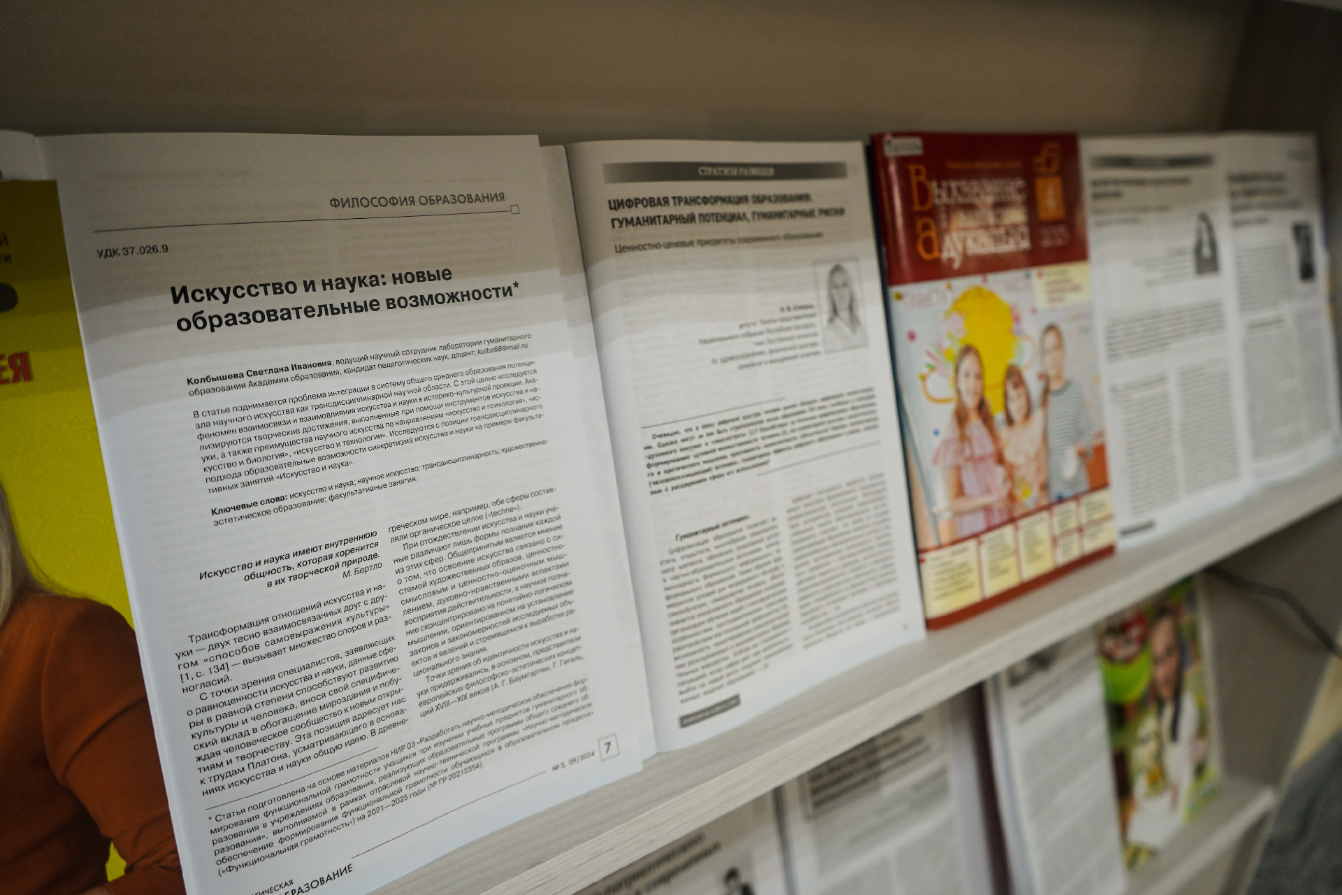 Экспазіцыя падрыхтавана па матэрыялах часопісаў «Педагогическая наука и образование», «Народная асвета», «Веснік адукацыі», «Адукацыя і выхаванне», «Выхаванне і дадатковая адукацыя», «Пачатковае навучанне», «Директор школы, гимназии, лицея» і інш.