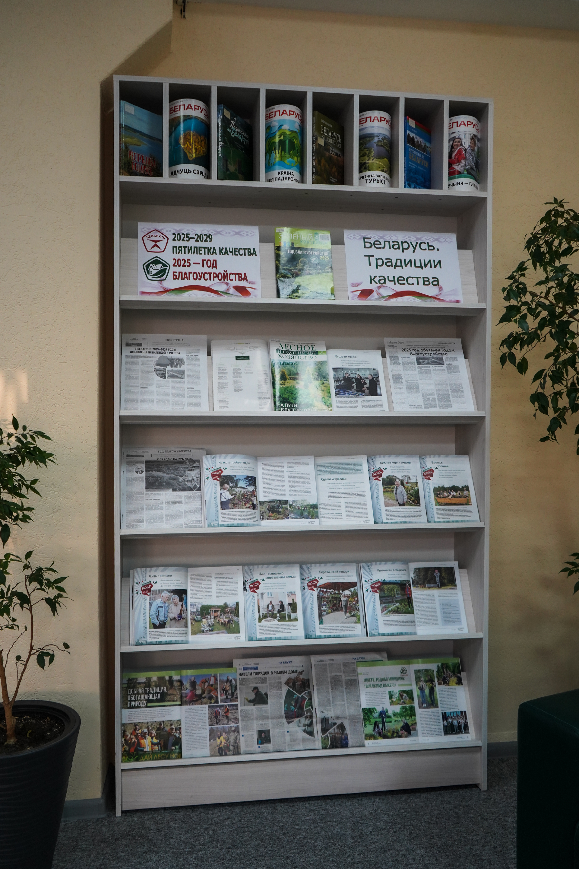 У аддзеле перыядычных выданняў абнавілі выставу «2025–2029: Пяцігодка якасці. 2025 — Год добраўпарадкавання» з серыі «Беларусь. Традыцыі якасці» свежымі матэрыяламі. Адмысловае месца ў экспазіцыі займае творчы праект часопіса «Беларуская думка» пад назвай «Спраўныя людзі», які ўвесь год знаёміў чытачоў з цікавымі праектамі жыхароў па паляпшэнні сваіх тэрыторый. Таксама прадстаўлены артыкулы аб рэспубліканскім восеньскім суботніку, які прайшоў 25 кастрычніка.