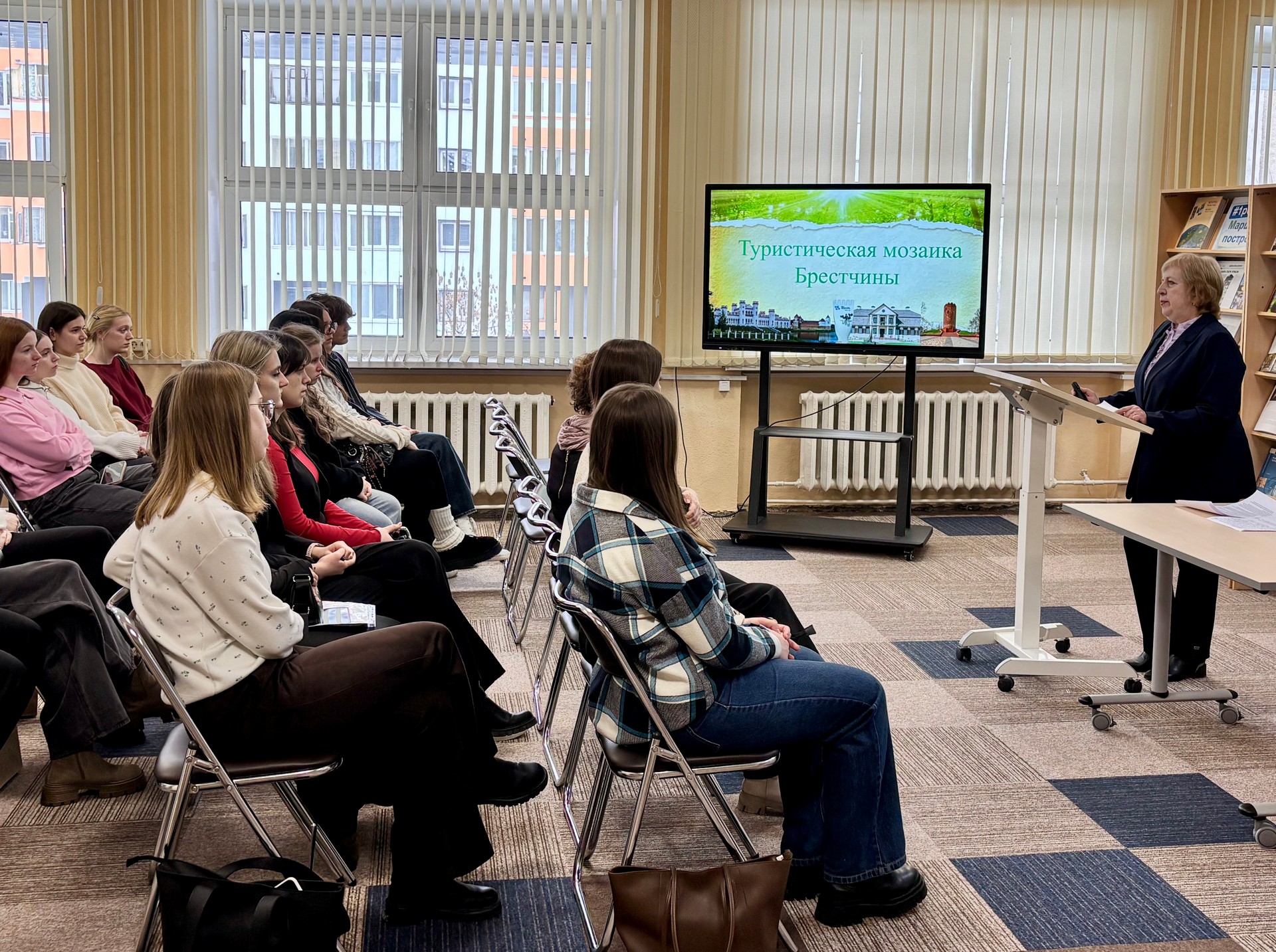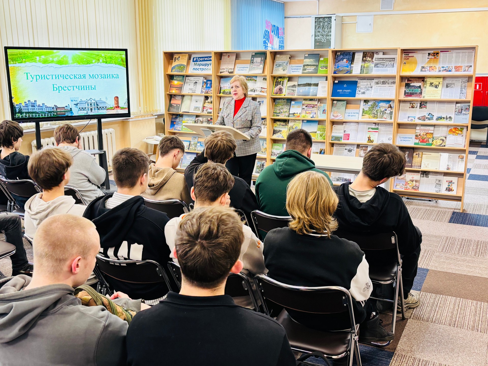 18 і 19 лютага 2026 года занятак «Турыстычная мазаіка Брэстчыны» прайшоў для навучэнцаў Брэсцкага дзяржаўнага каледжа прыборабудавання і студэнтаў БрДУ імя А. С. Пушкіна. Загадчык агульнай чытальнай залы Тамара Васільеўна Глазкова прадставіла ўдзельнікам сустрэч выставу «Брэсцкі рэгіён. Маршрут пабудаваны». Экспазіцыя ўключыла разнастайныя кніжныя выданні, публікацыі з перыёдыкі і фотадакументы, якія дэталёва асвятляюць гістарычнае, прыроднае і культурнае багацце Брэсцкай вобласці, адроджанае намаганнямі дзяржавы і грамадства.