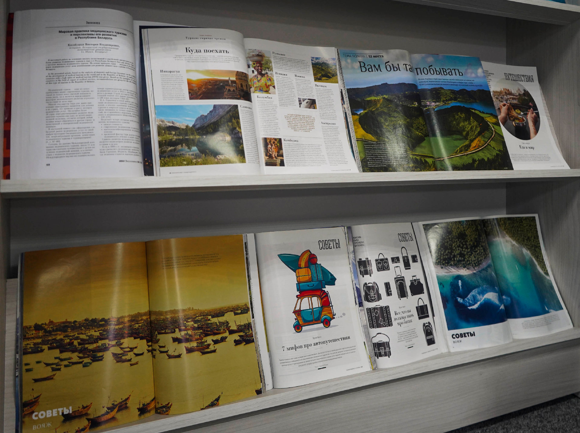 На выставе прадстаўлены публікацыі з перыядычных выданняў, якія змяшчаюць інфармацыю аб турыстычнай індустрыі на сучасным этапе, аб формах і відах турызму, парады і ідэі для падарожнікаў-пачаткоўцаў.