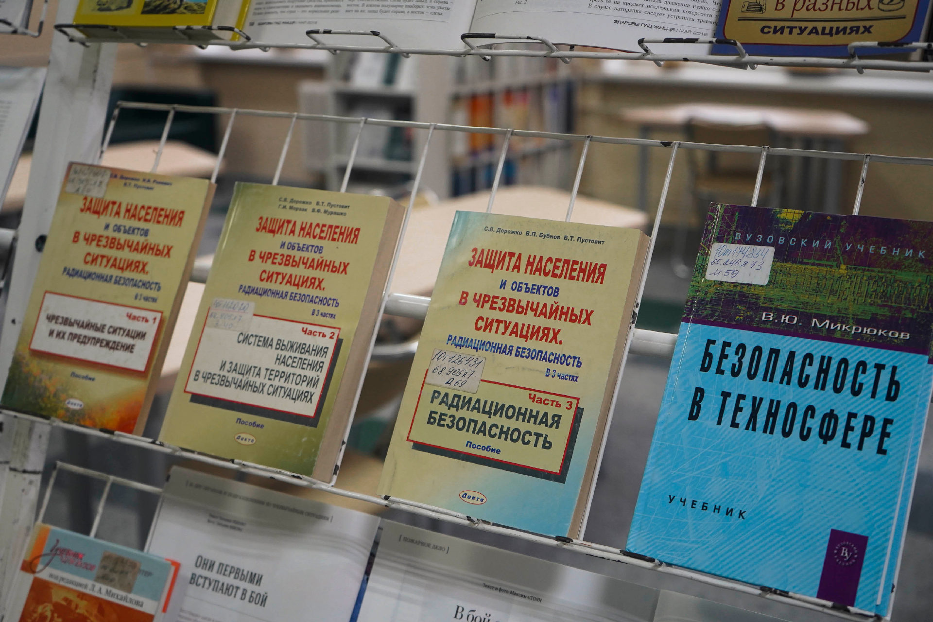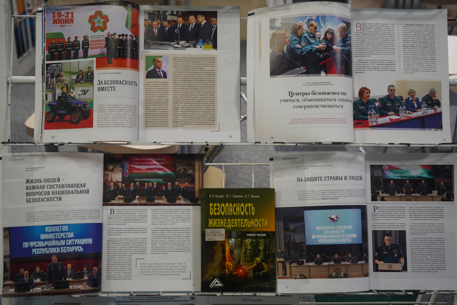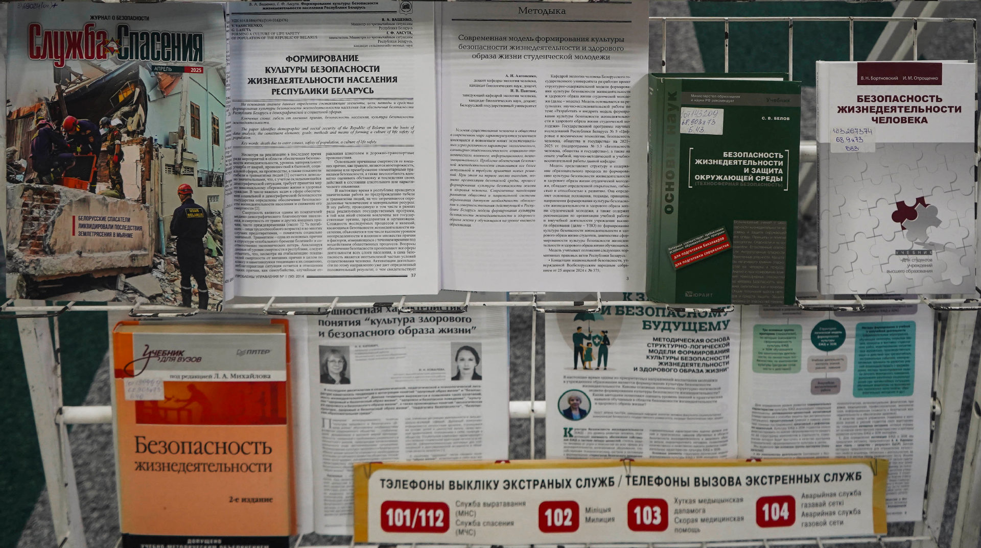 Сярод матэрыялаў экспазіцыі — як кнігі, так і свежыя публікацыі з перыядычных выданняў («Охрана труда и социальнавя защита», «ОТТБ. Охрана труда. Технологии безопасности» и «Служба спасения»).