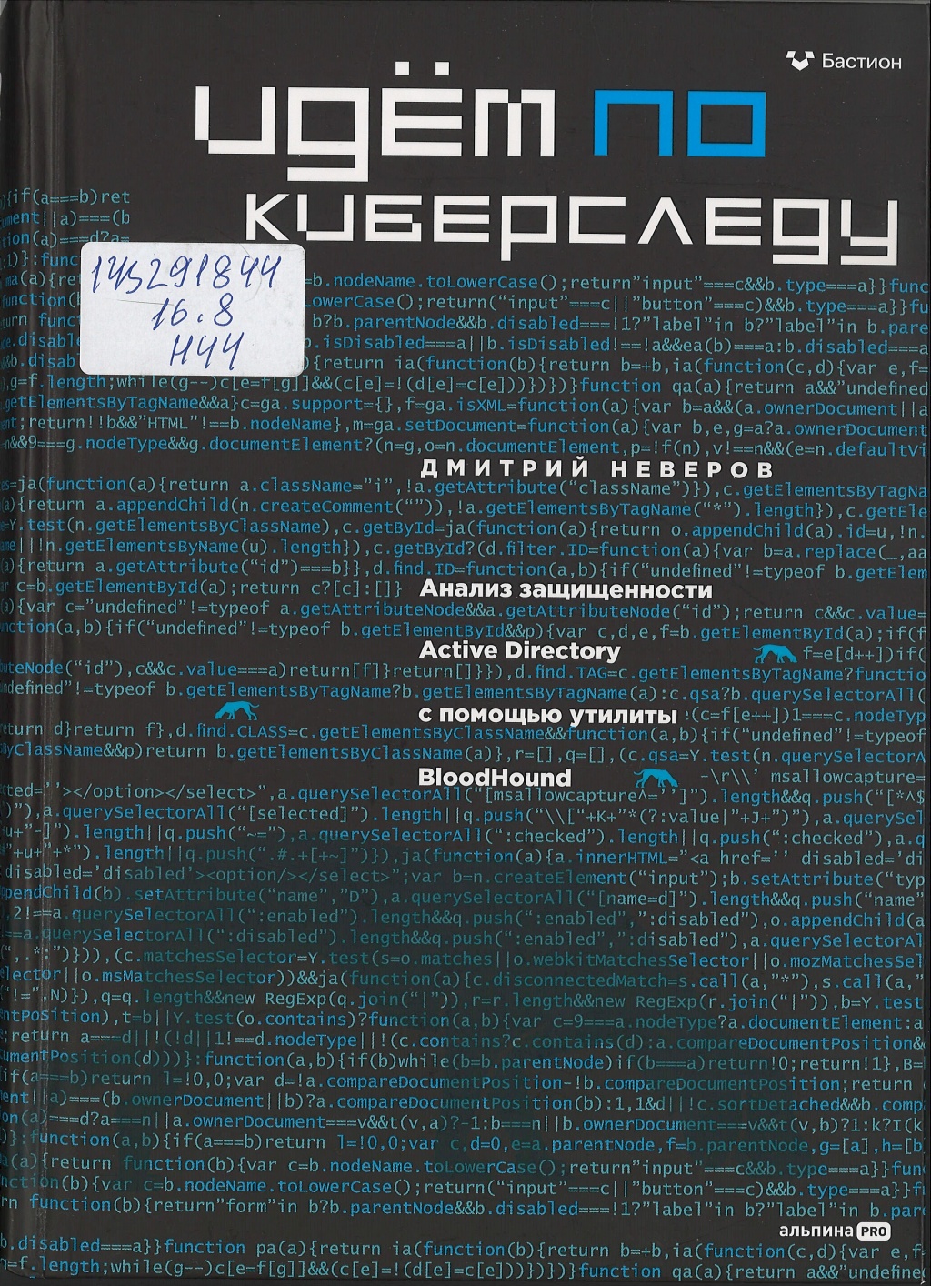 Неверов, Д. Идем по киберследу : анализ защищенности Active Directory с помощью утилиты BloodHound / Дмитрий Неверов. – Текст : непосредственный. – Москва : Альпина ПРО, 2025. - 296, [1] с.