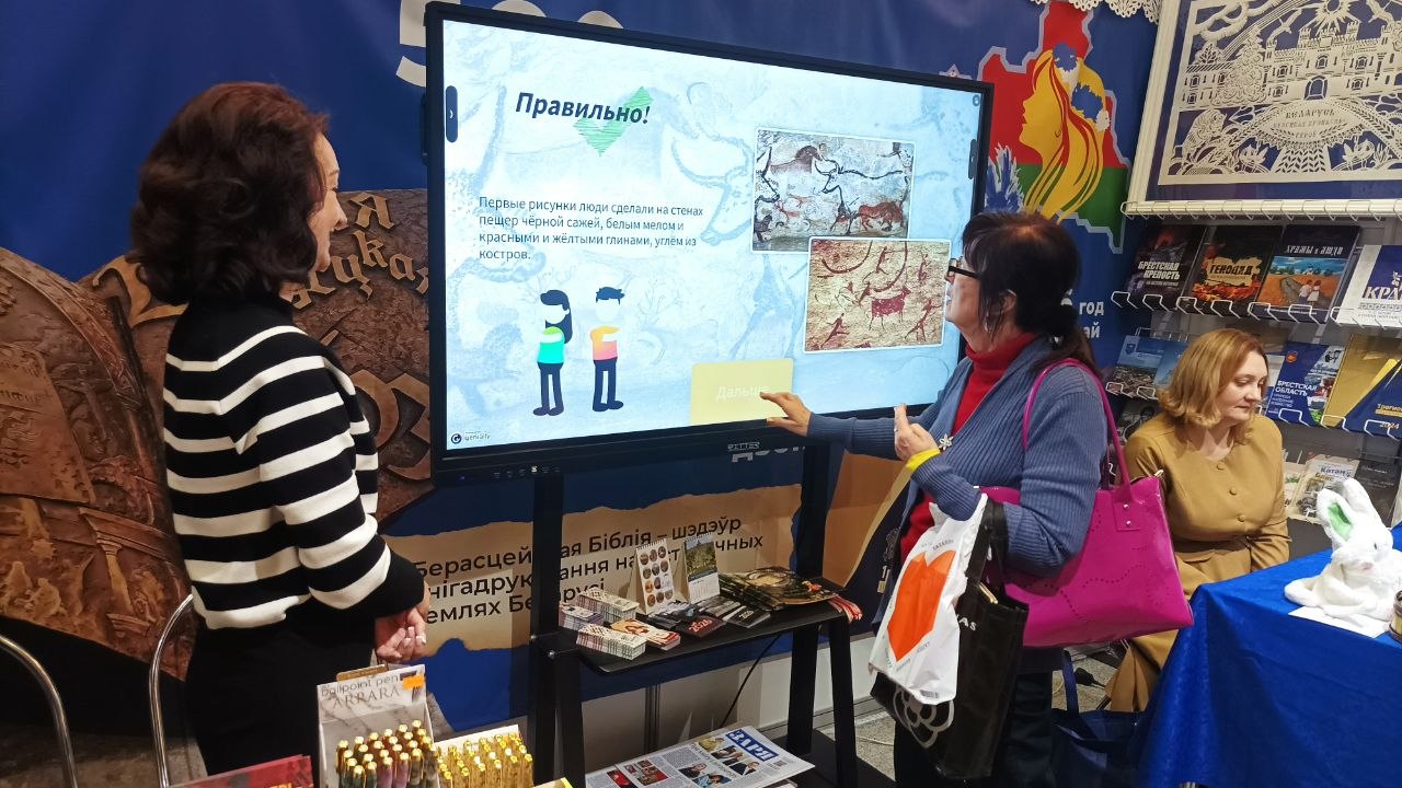 Кроме ознакомления с виртуальными проектами, посетители и гости выставки-ярмарки имели возможность совершить виртуальное путешествие в историю книги: с помощью интерактивных викторин узнать, кто, где и когда создавал рукописные книги, какие материалы и принадлежности использовались, из чего изготавливались чернила и краски, чем украшались текст и фолианты.