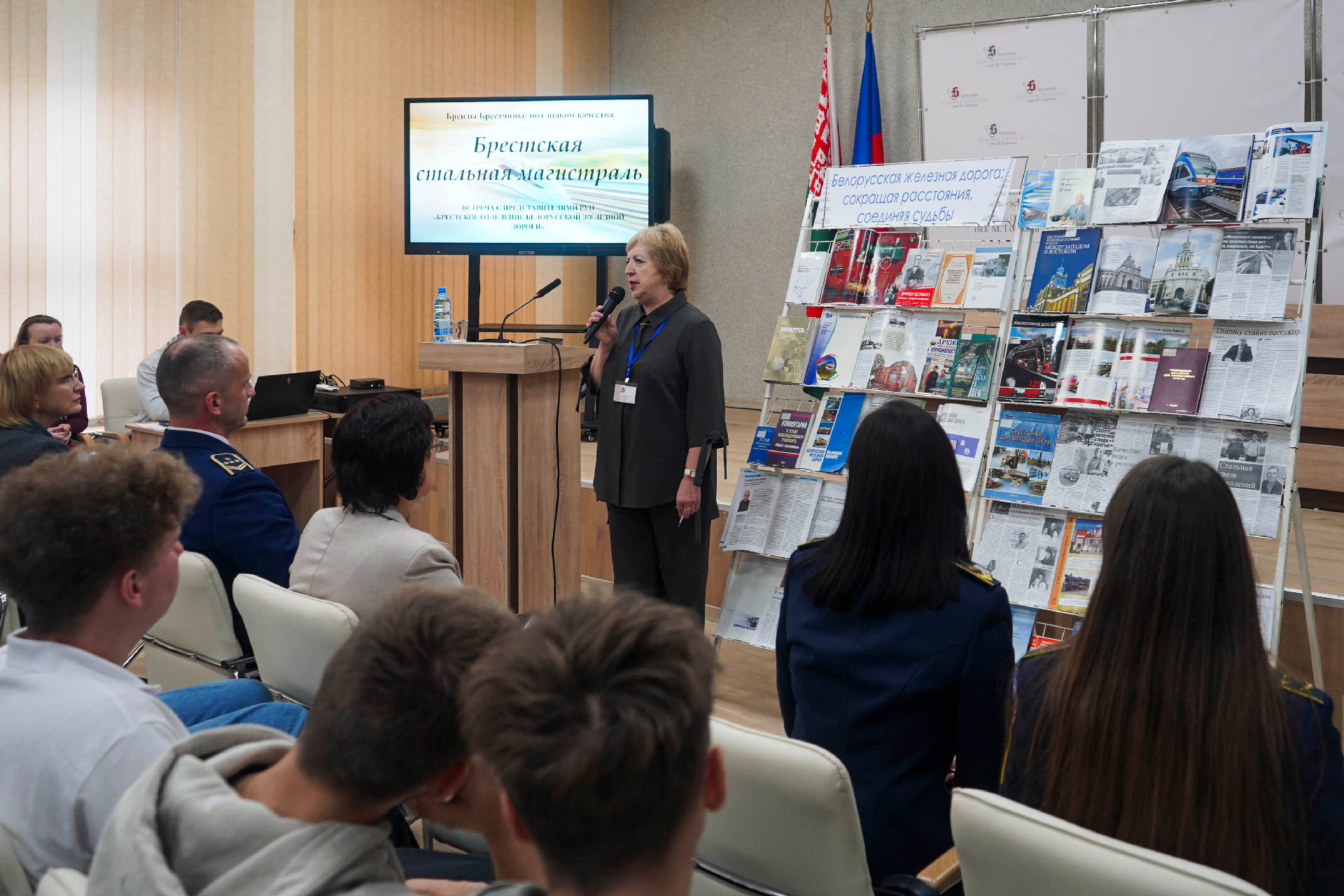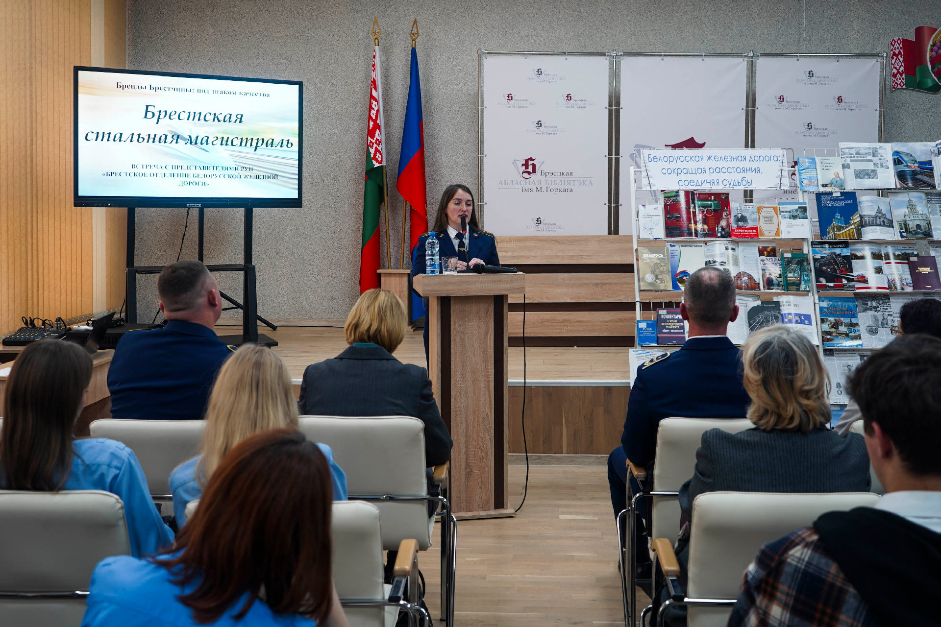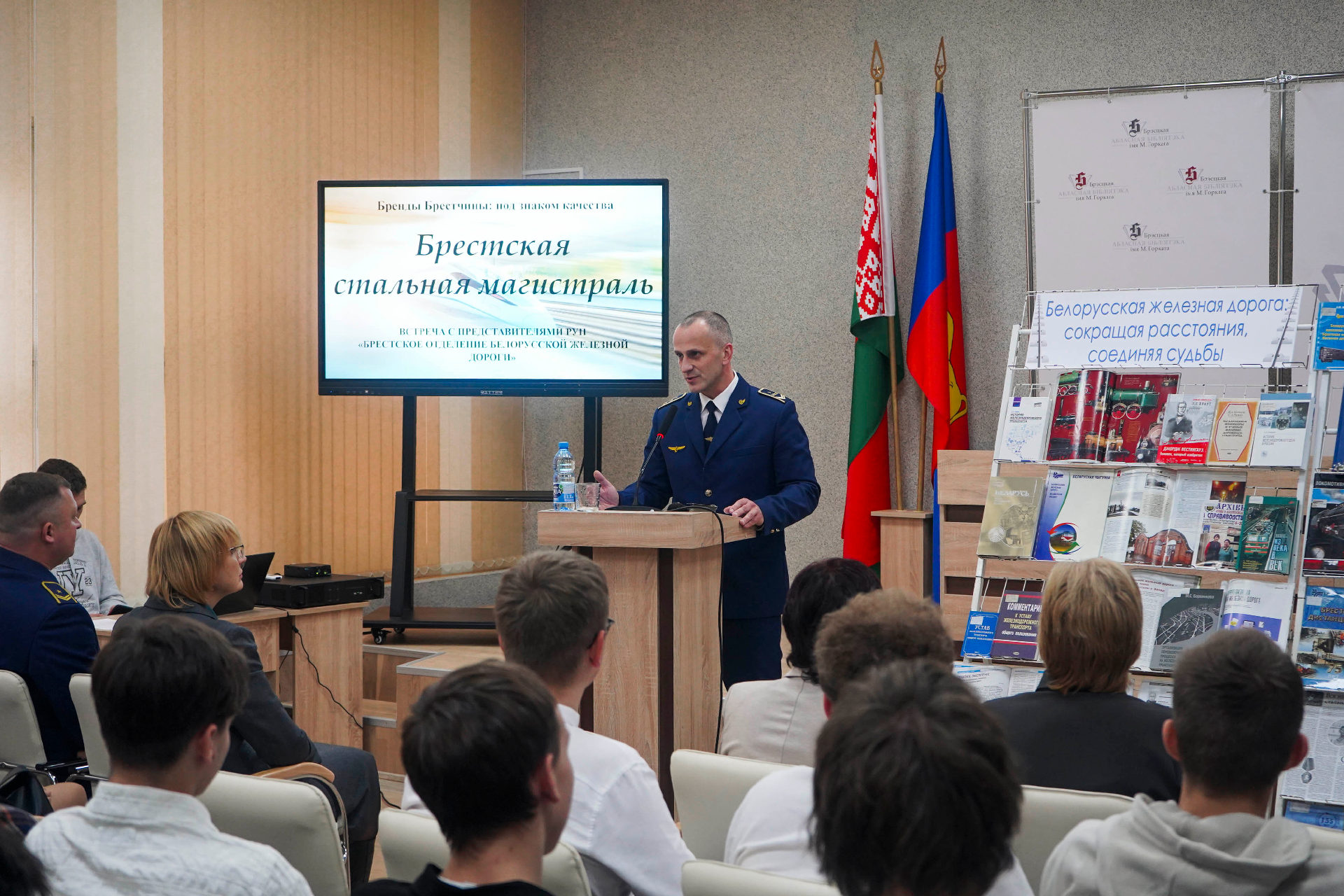 Брестская областная библиотека им. М. Горького в 2025 году, открывающем в Республике Беларусь пятилетку качества, продолжает реализацию информационно-просветительского проекта «Бренды Брестчины: под знаком качества», цель которого — знакомство молодёжи с работой успешных предприятий и организаций Первого региона. 12 ноября в библиотеке прошла встреча учащихся старших курсов Брестского государственного колледжа транспорта и сервиса и Брестского колледжа – филиала учреждения образования «Белорусский государственный университет транспорта» с представителями РУП «Брестское отделение Белорусской железной дороги».