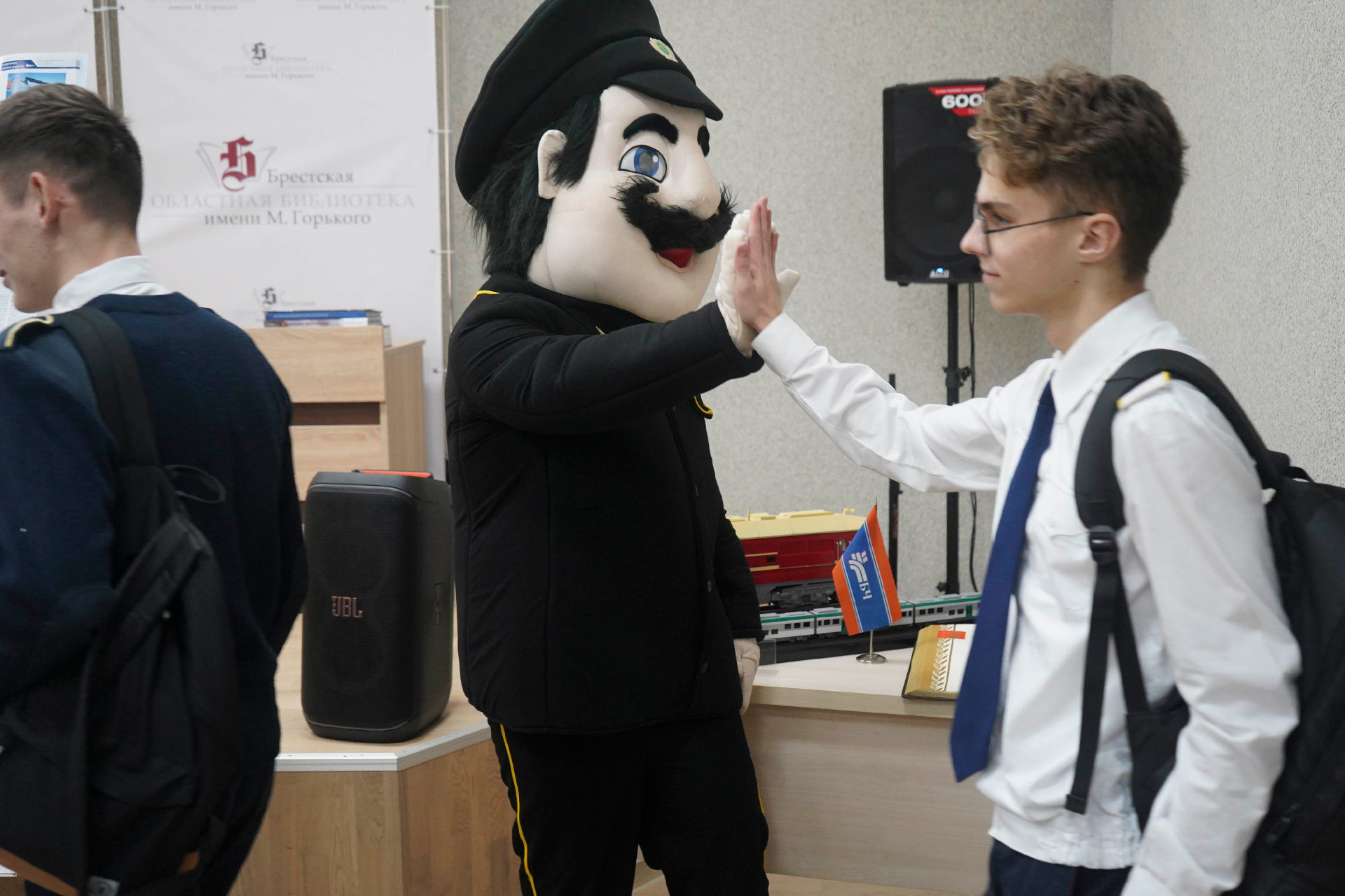 Не обошлось и без интерактива: будущие железнодорожники ответили на вопросы тематической викторины, и самые внимательные из них получили призы. Встречу украсили экспонаты музея железнодорожной техники г. Бреста и выставка литературы «Белорусская железная дорога: сокращая расстояния, соединяя судьбы», включившая материалы по истории и современному развитию главной транспортной артерии страны.
