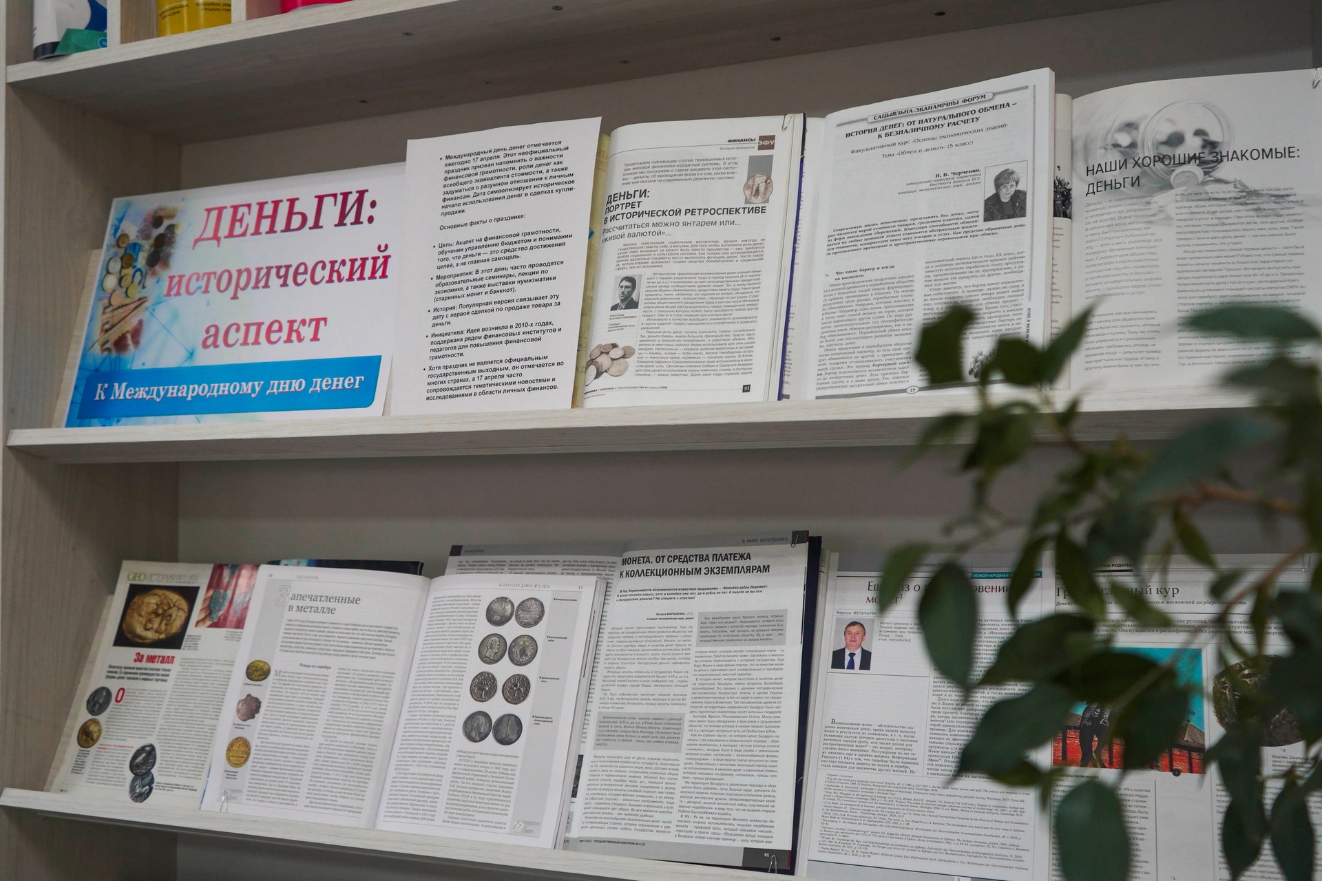 Экспозиция подготовлена по материалам журналов: «Экономика. Финансы. Управление», «Планета», «Наука и жизнь», «Банковский вестник», «Секретарское дело», «Деньги и кредит». «Вокруг света», «Гермес», «Финансы. Учёт. Аудит» и др.