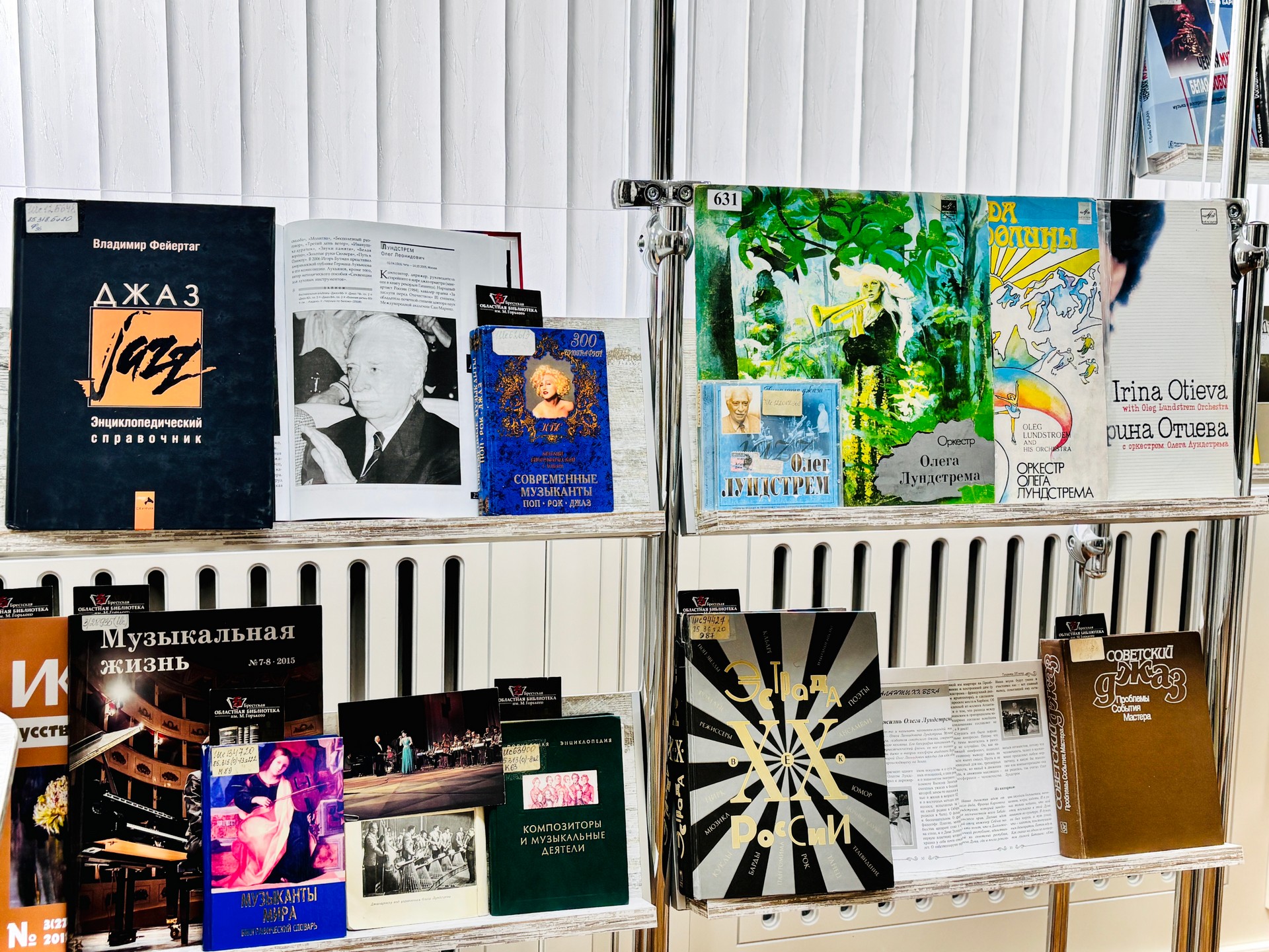 В экспозиции представлены книги, открытки, грамзаписи, периодические издания, которые освещают историю джаза, его развитие и судьбы музыкантов, с акцентом на творчество О. Л. Лундстрема. Заинтересует издание «Советский джаз. Проблемы. События. Мастера» (Москва, 1987). Сборник охватывает период 1970 – начало 1980-х годов и состоит из четырёх разделов. В первом — высказывания о джазе видных композиторов. Во втором помещены теоретические статьи, в третьем — статьи об отдельных исполнителях и коллективах. В конце — дискография, рецензии на книги о джазе и словарь терминов. Интерес представляет фундаментальное двухтомное исследование под редакцией Кирилла Мошкова и Александры Филипьевой «Российский джаз» (Санкт-Петербург, 2013). Первый том посвящён истории и развитию джаза в России. Второй том включает биографии, анализ стилей, интервью и материалы о ключевых событиях.