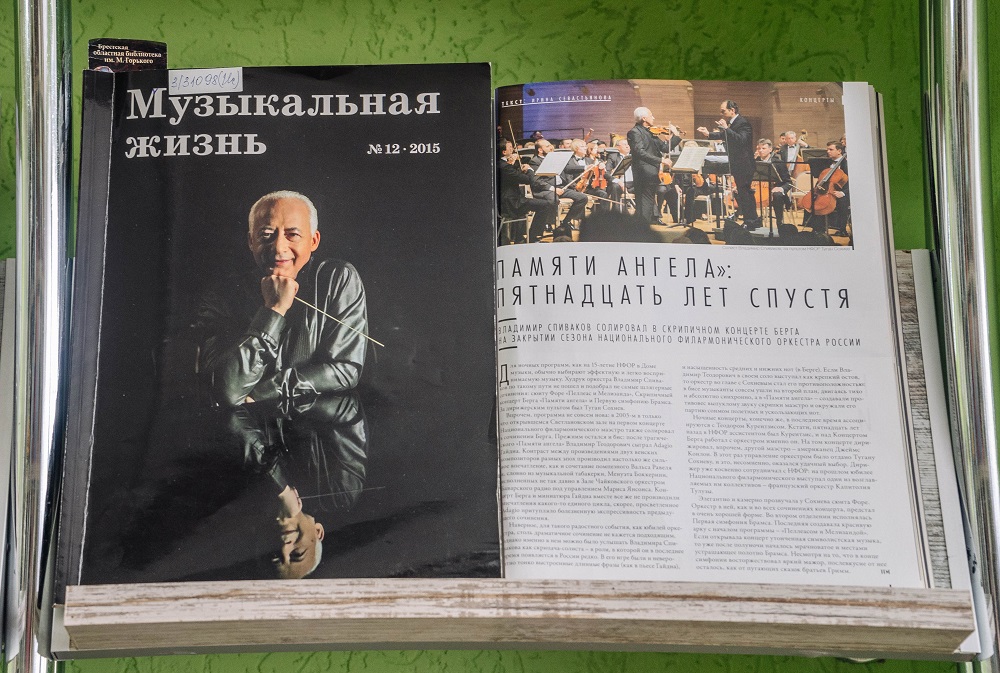 С 12 сентября 2024 г. в секторе литературы по искусству Брестской областной библиотеки им. М. Горького действует выставка «Портрет современного дирижёра», посвящённая 80-летию со дня рождения российского дирижёра, скрипача и педагога Владимира Теодоровича Спивакова. Художественный руководитель и главный дирижёр Национального филармонического оркестра России и Государственного камерного оркестра «Виртуозы Москвы», президент Московского международного Дома музыки. За свою биографию Владимир Спиваков успешно проявил себя как солист с оркестром, солист с фортепиано, дирижёр с оркестром. Вышло несколько компакт-дисков с его музыкой. Неоднократно выступал в качестве члена жюри, а также президента на международных конкурсах. Спиваков награждён множеством орденов, удостоен премий в известнейших международных конкурсах, а также титулов, званий.