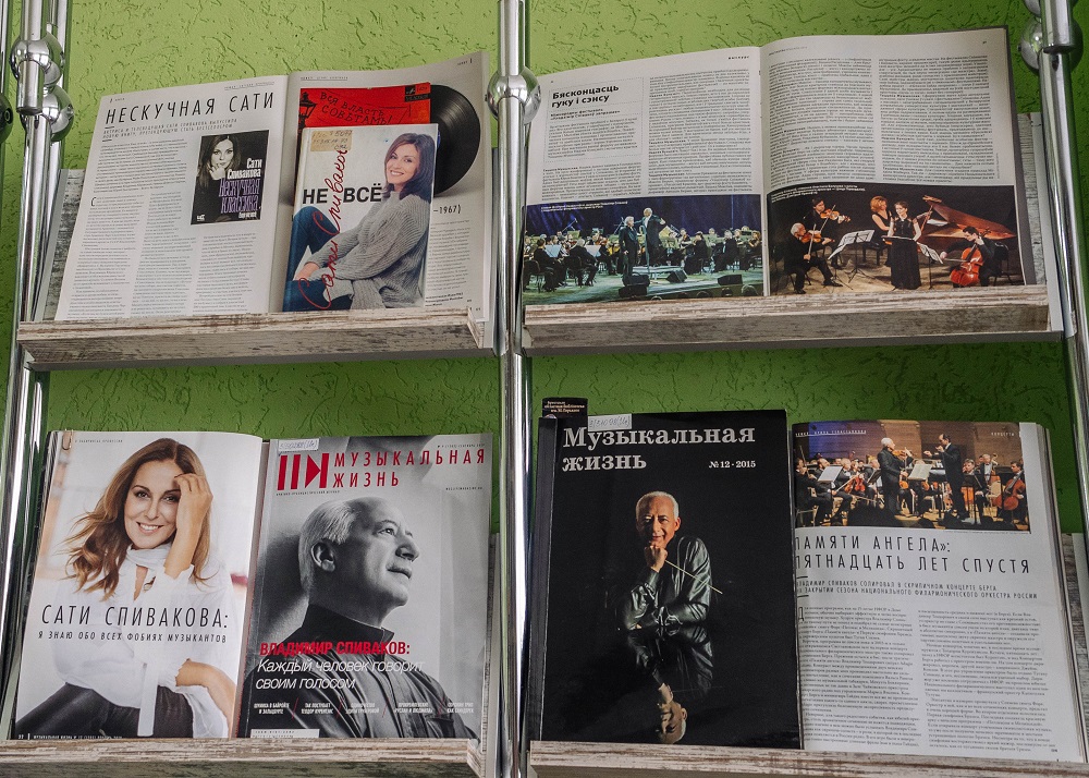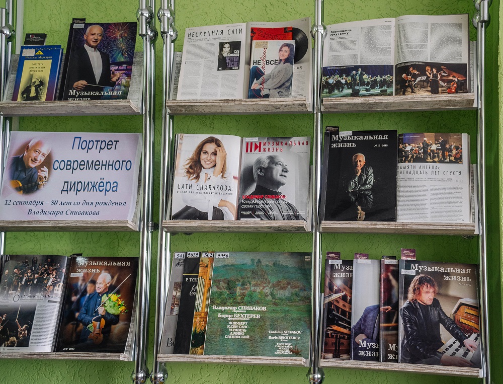 В экспозиции представлены книги, периодические издания, грамзаписи. Интерес представляет книга Н. А. Маркарян «Портреты современных дирижеров» (Москва, 2023), которая знакомит с зарубежными и российскими дирижёрами, в том числе и с В. Т. Спиваковым. Автор вместе со своими героями пытается ответить на вопросы: что такое дирижёрский талант, почему оркестр легко повинуется одному человеку? Заинтересует книга воспоминаний Сати Спиваковой «Не всё» (Москва, 2003), где жена виртуоза пишет о себе, муже и друзьях. Ведь очень интересно хоть ненадолго заглянуть в закулисье жизни известных и талантливых людей. Как относится В. Спиваков к музыке композитора Д. Шостаковича, можно узнать из его вступительной статьи в книге Соломона Волкова «Шостакович и Сталин: художник и царь» (Москва, 2004).