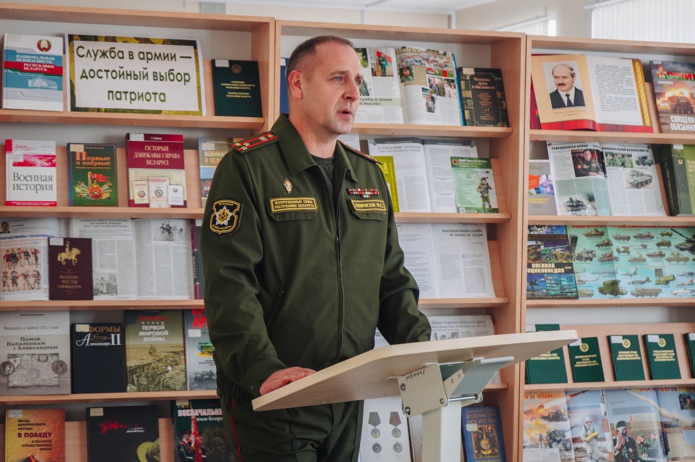 24 сентября 2024 г. в Публичном центре правовой информации Брестской областной библиотеки им. М. Горького состоялось занятие Школы правовых знаний «Всегда готовы Родине служить». В мероприятии приняли участие начальник направления призыва на военную службу военного комиссариата Брестской области полковник М. С. Хвирисюк и начальник группы организации отбора на военную службу военного комиссариата Брестской области А. В. Голюк.