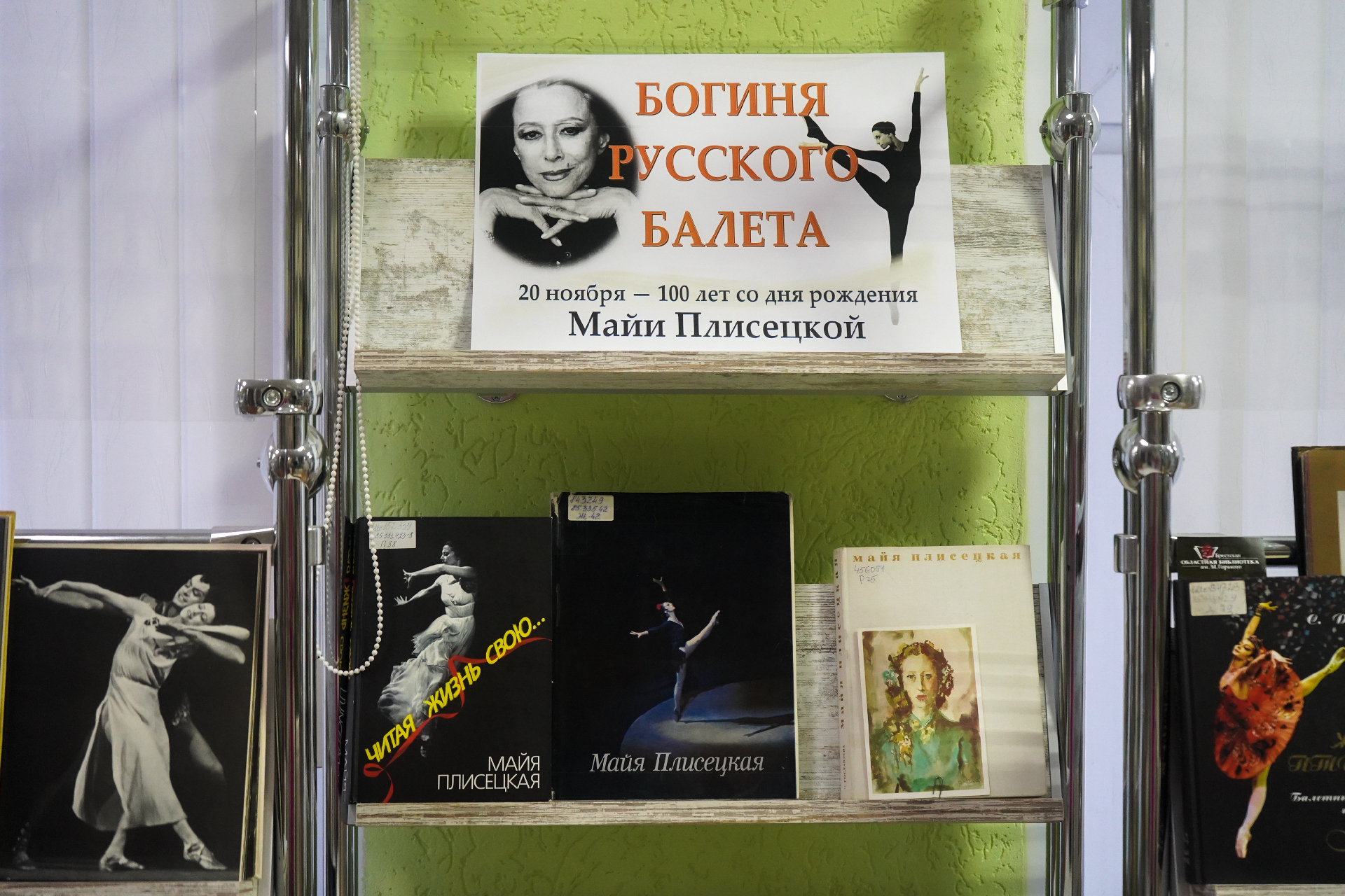 С 20 ноября 2025 г. в секторе литературы по искусству Брестской областной библиотеки им. М. Горького действует выставка «Богиня русского балета», посвящённая 100-летию со дня рождения балерины, балетмейстера, хореографа Майи Михайловны Плисецкой. Более 40 лет русская балерина Майя Плисецкая была солисткой Большого театра. С гастролями и концертами она объездила почти весь мир: выступала с номерами из балетов, участвовала в постановках зарубежных хореографов, сама ставила спектакли. Майя Плисецкая — легенда русского балета, очаровательная женщина, уникальная танцовщица XX века.