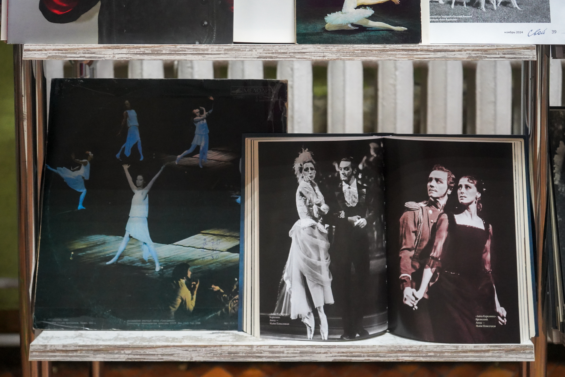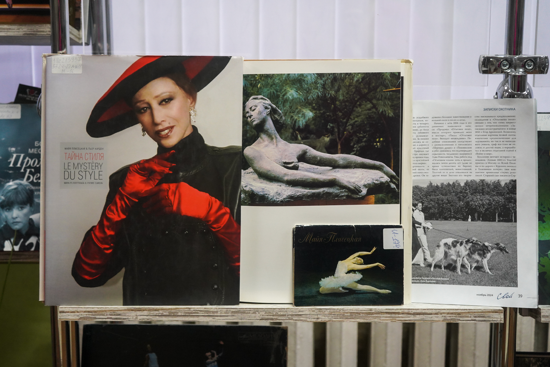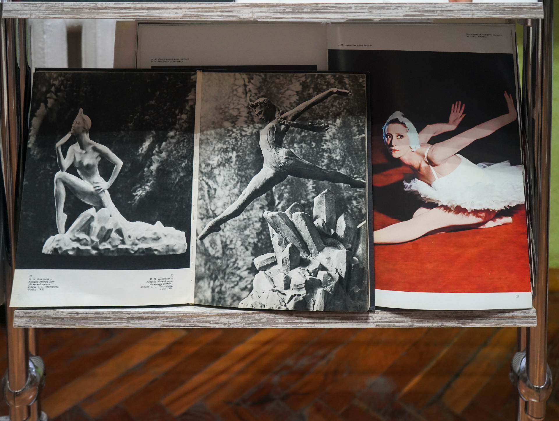 В экспозиции представлены книги, открытки, грамзаписи, периодические издания, которые знакомят с жизнью и творчеством балерины. В издании Семёна Гурария «Азбука легенды: диалоги с Майей Плисецкой» (Москва, 2016) балерина выступает одновременно и героиней, и автором. Майя Плисецкая делится своими мыслями, чувствами, впечатлениями и переживаниями с автором. Книга Марии Багановой «Майя Плисецкая» (Москва, 2014) представляет биографию удивительной женщины, ставшей одним из символов XX века. В книге «Я, Майя Плисецкая» (Москва, 1995), автором которой является сама балерина, она описывает свою жизнь, неразрывно связанную с балетом. Пишет талантливо и весьма откровенно.