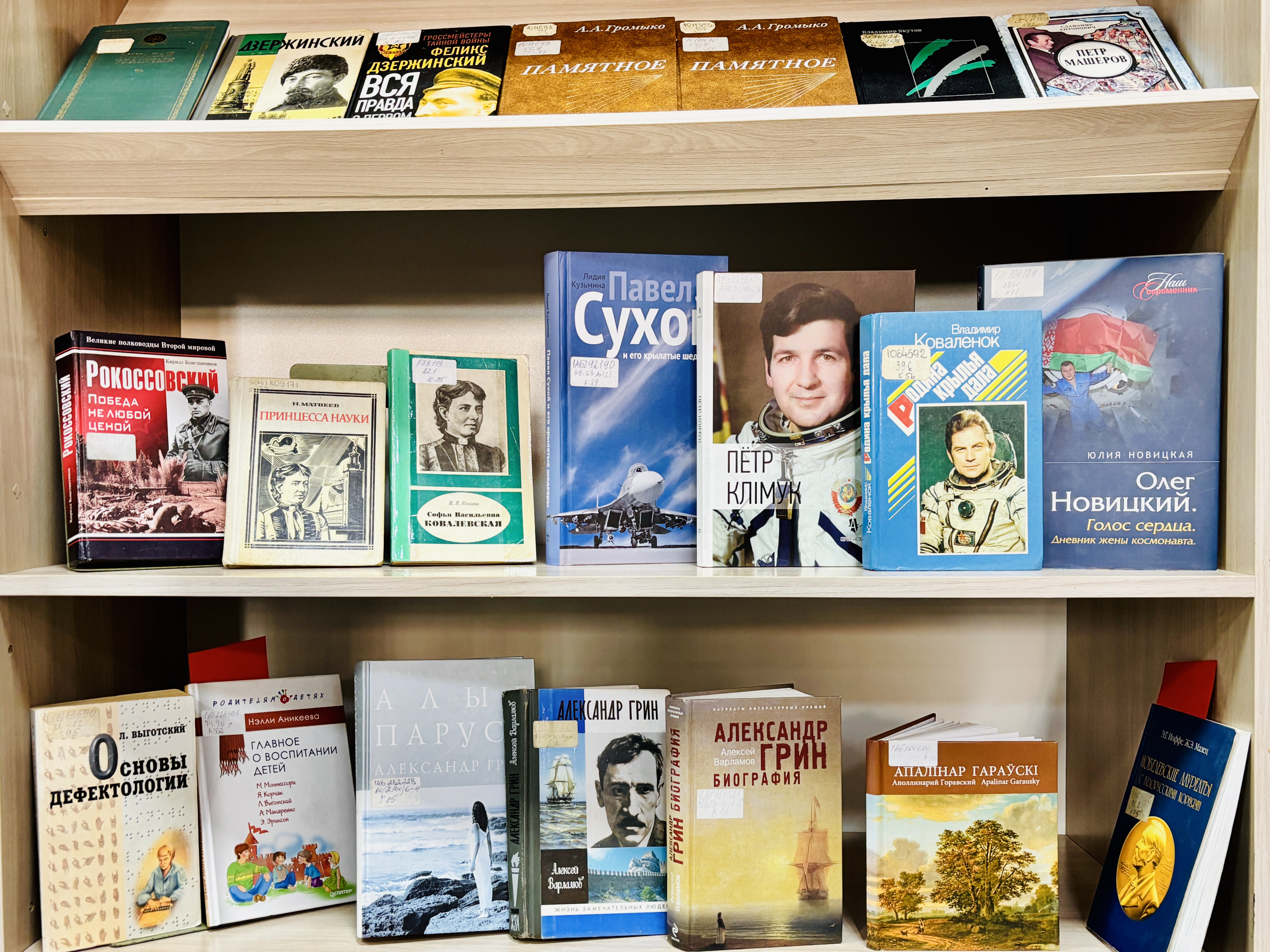 На экспозиции представлены издания, рассказывающие о славных именах нашей общей истории. Хронологические рамки — от Симеона Полоцкого, просветителя и поэта XVII века (Симеон Полоцкий «Вирши», Минск, 1990), до первого белорусского космонавта Петра Климука («Пётр Клімук: жыццё і подзвіг касманаўта», Мінск, 2017); от российского историка XVIII века Василия Татищева (А. Г. Кузьмин «Татищев», Москва, 1987) до писателя Сергея Смирнова, впервые рассказавшего миру о героизме защитников Брестской крепости (С. С. Смирнов «Брестская крепость», Минск, 1991).