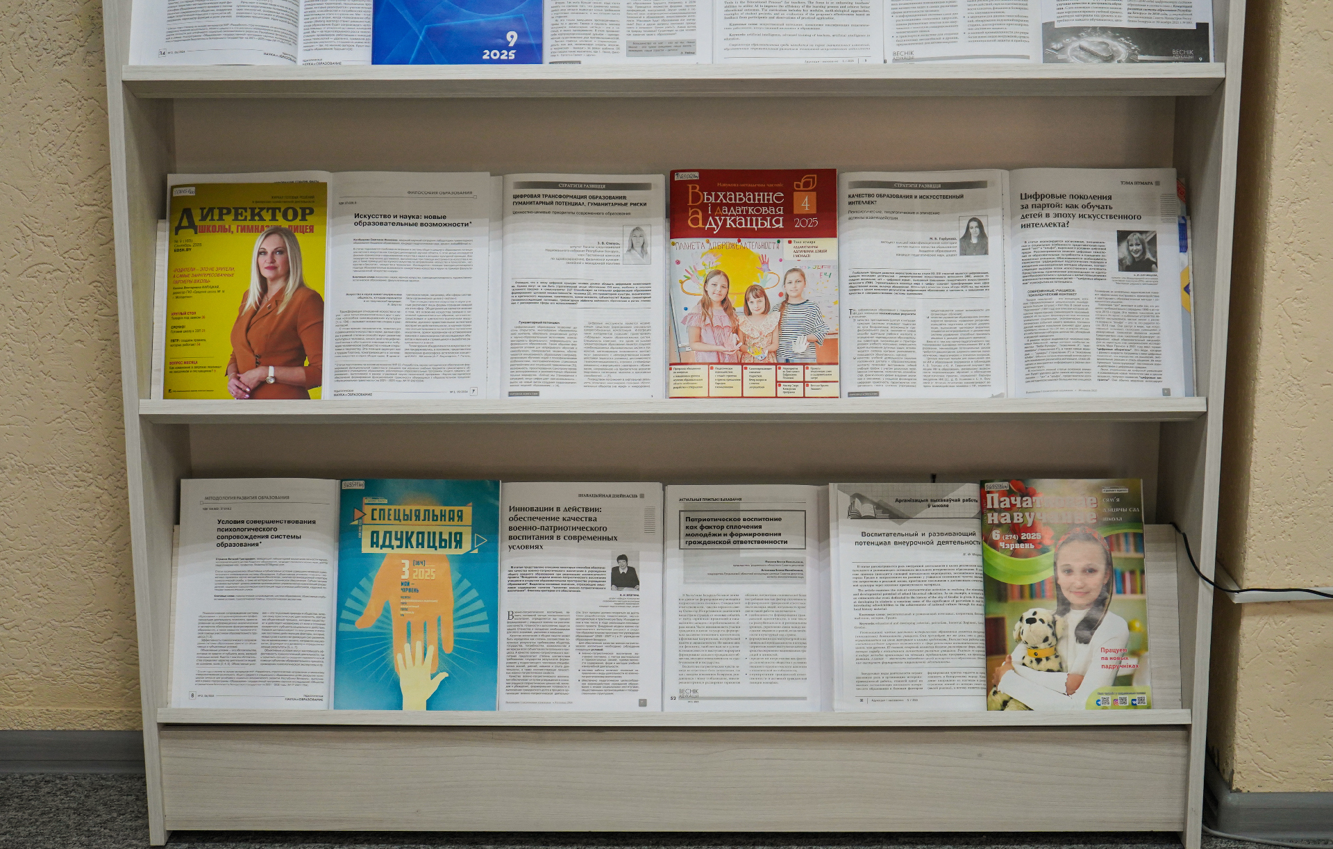 Экспазіцыя падрыхтавана па матэрыялах часопісаў «Педагогическая наука и образование», «Народная асвета», «Веснік адукацыі», «Адукацыя і выхаванне», «Выхаванне і дадатковая адукацыя», «Пачатковае навучанне», «Директор школы, гимназии, лицея» і інш.