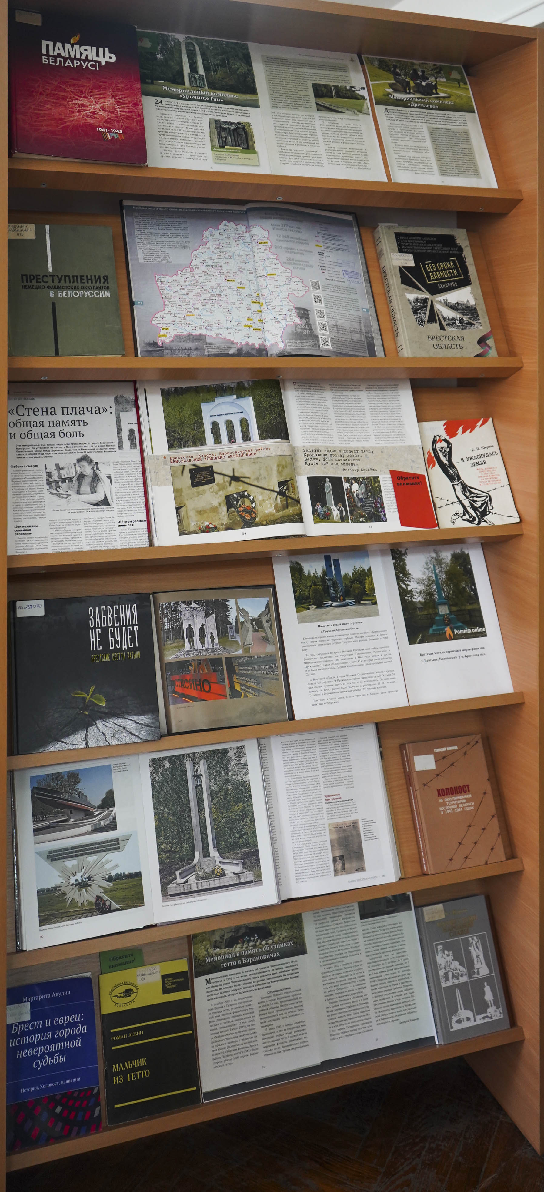 На выставе вы можаце знайсці матэрыялы пра месцы масавага знішчэння на тэрыторыі Беларусі яўрэйскага насельніцтва: мемарыяльны комплекс «Урочышча Гай» (г. Баранавічы), мемарыяльны комплекс «Ахвярам Халакоста» ва ўрочышчы Спасіна (Столінскі р-н), нацысцкі канцэнтрацыйны лагер і лагер смерці Калдычэва (Баранавіцкі р-н), пра фабрыку смерці на Броннай Гары (Бярозаўскі р-н) і інш.