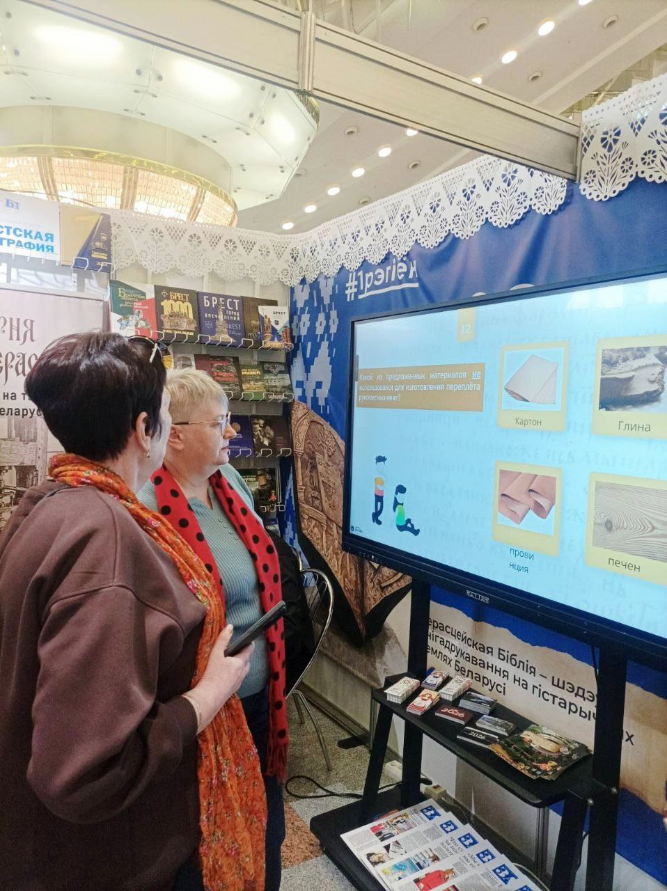 Акрамя знаёмства з віртуальнымі праектамі, наведвальнікі і госці выставы-кірмашу мелі магчымасць здзейсніць віртуальнае падарожжа ў гісторыю кнігі: з дапамогай інтэрактыўных віктарын даведацца, хто, дзе і калі ствараў рукапісныя кнігі, якія матэрыялы і прылады пісьма выкарыстоўваліся, з чаго вырабляліся чарнілы і фарбы, чым упрыгожваліся тэкст і вокладкі.