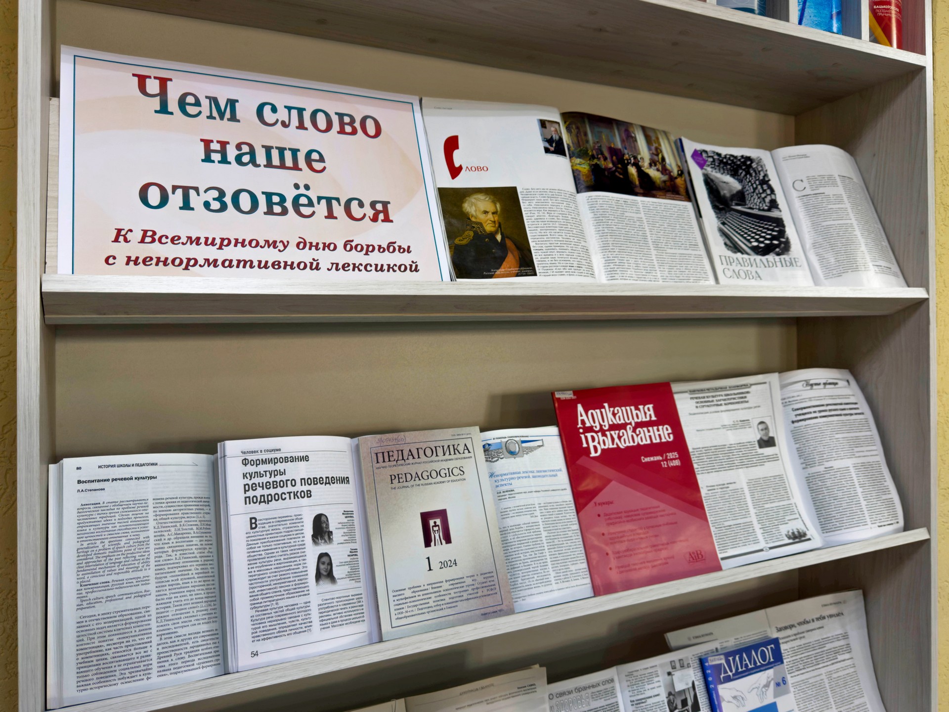 На выставке представлены публикации, которые рассказывают о воспитании и развитии речевой культуры, влиянии сквернословия на здоровье людей, об опасности и вреде ненормативной лексики. Знание слов ненормативной лексики — не повод к их бездумному употреблению.