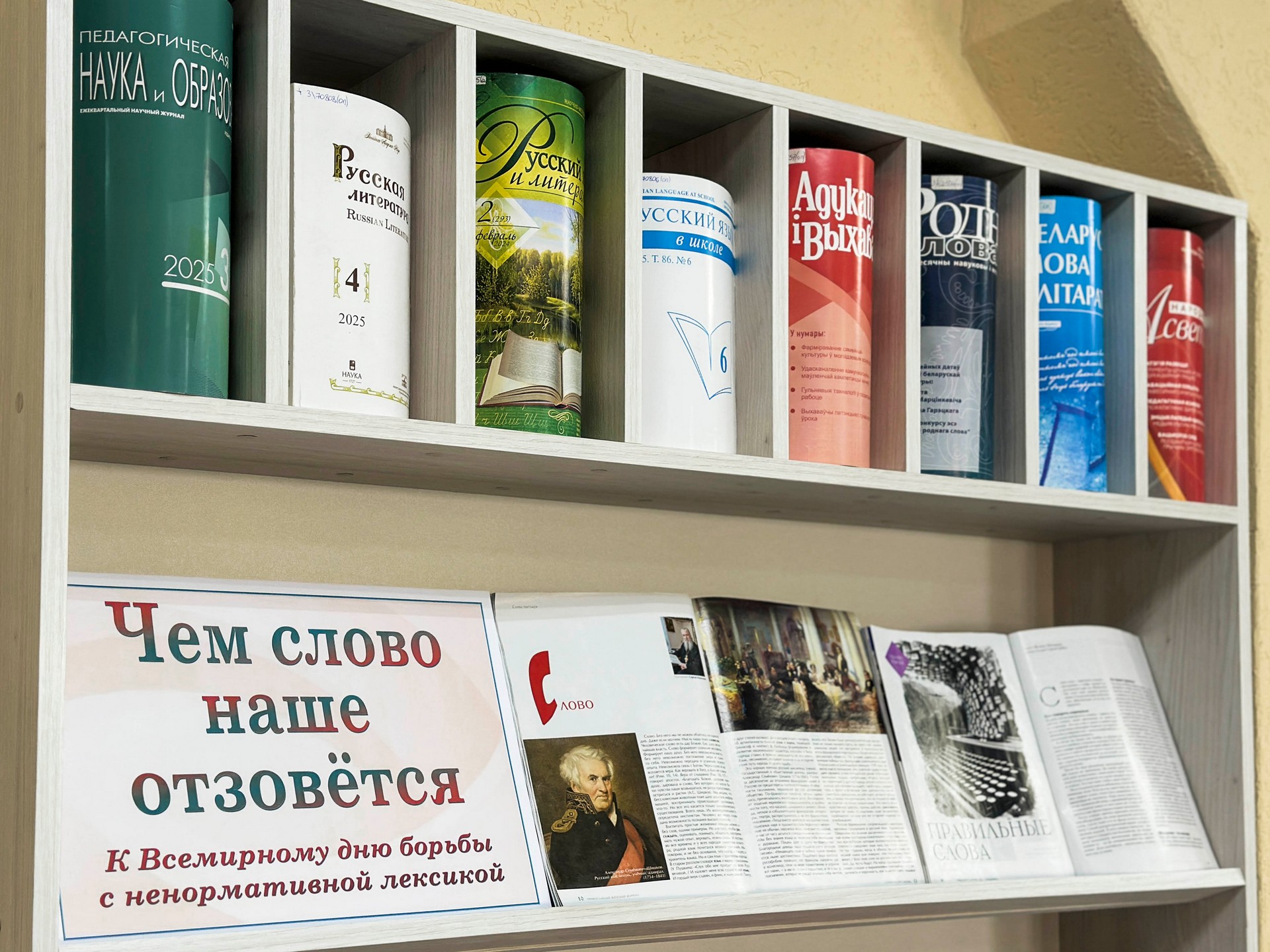 Выставка подготовлена по материалам публикаций из журналов: «Русский язык и литература», «Русский язык в школе», «Роднае слова», «Беларуская мова і літаратура», «Выхаванне і дадатковая адукацыя», «Народная асвета» «Народное образование», «Диалог», «Здоровый образ жизни», «Славянка» и др.