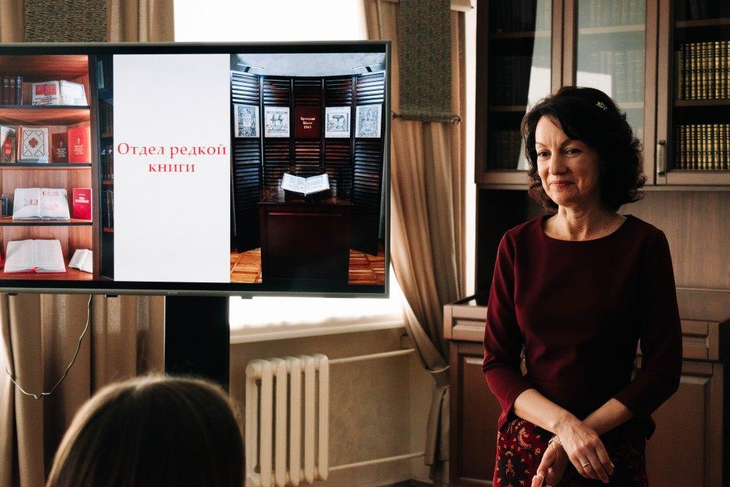 Заг. аддзела рэдкай кнігі А. А. Пінкевіч распавяла аб карпатлівым працэсе падрыхтоўкі заняткаў з інтэрактыўнымі практычнымі заданнямі. Бібліятэкар аддзела сацыякультурнай дзейнасці і маркетынгу Л. В. Кавалеўская распавяла аб відэароліках, якія ад зместу да дызайну і графікі рыхтуюць супрацоўнікі аддзела ў цеснай сувязі з аддзелам рэдкай кнігі. Аб сумеснай рабоце па агучванні відэаролікаў распавяла валанцёр, чытач і проста сябар бібліятэкі Саша Вараш. Прысутныя пагрузіліся ў атмасферу XVI ст., а потым убачылі на свае вочы арыгінальныя кнігі выдавецтваў Плантэна і Эльзевіраў. Напрыканцы мерапрыемства прэзентаваны новы відэаролік. Ён прысвечаны працы польскага гісторыка Аляксандра Гваньіні «Хроніка Еўрапейскай Сарматыі» (Кракаў, 1611).
