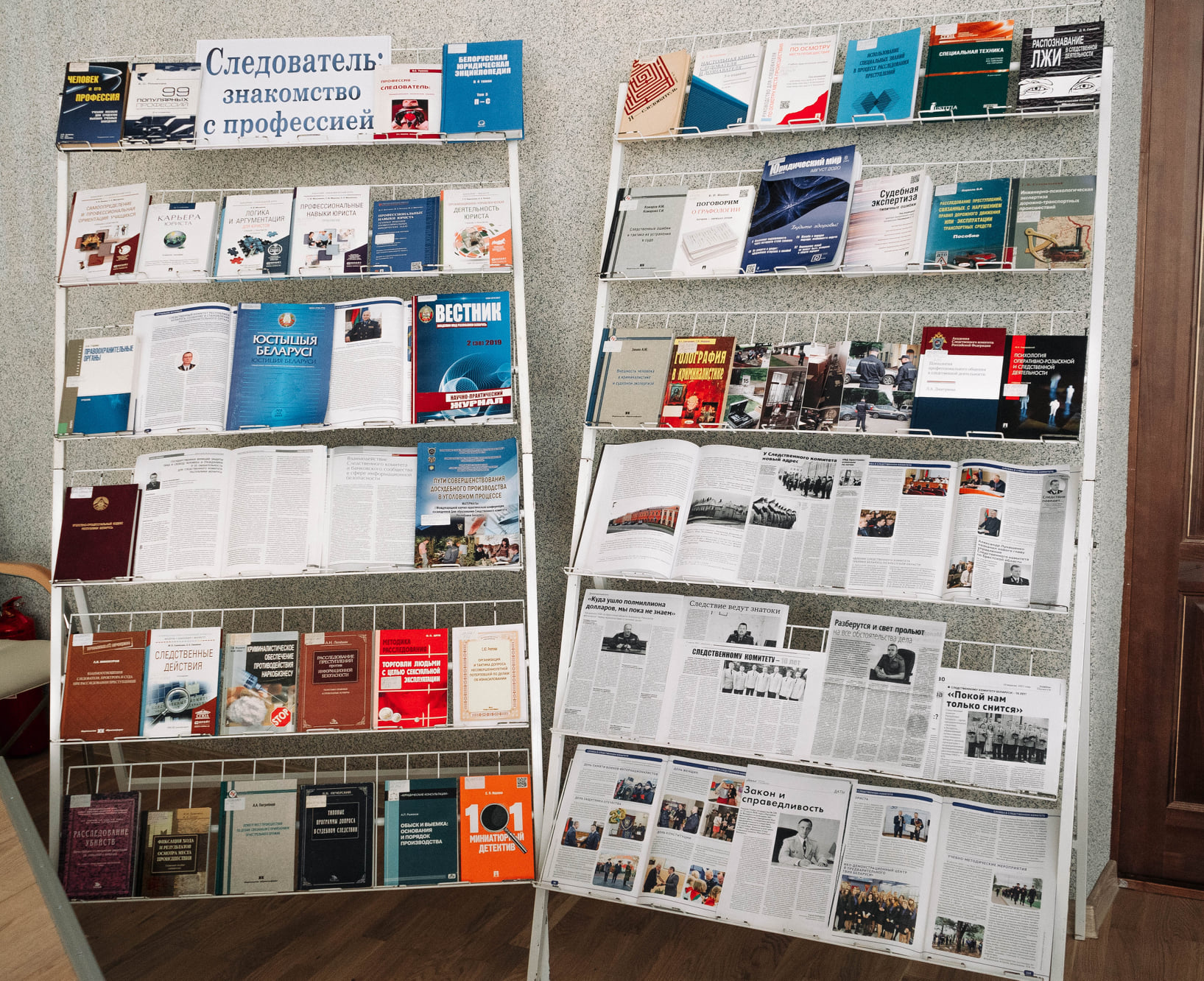 Да Дня прафарыентацыі была падрыхтавана выстава літаратуры з фонда бібліятэкі «Следователь: знакомство с профессией».