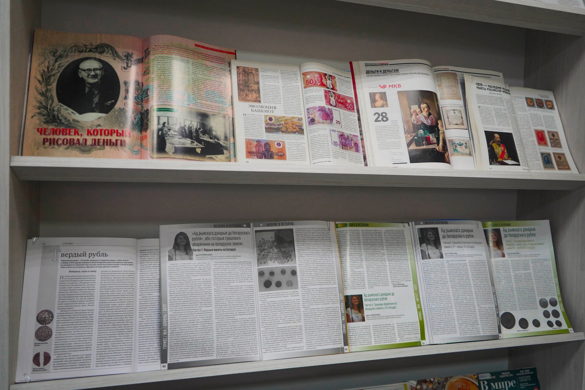 Экспазіцыя падрыхтавана па матэрыялах часопісаў: «Эканоміка. Фінансы. Упраўленне», «Планета», «Навука і жыццё», «Банкаўскі веснік», «Сакратарская справа», «Грошы і крэдыт». «Вакол свету», «Гермес», «Фінансы. Улік. Аўдыт» і інш.