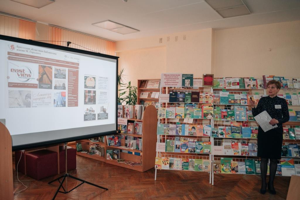 У лютым – сакавіку 2021 г. у Брэсцкай абласной бібліятэцы імя М. Горкага адбыліся Дні інфармацыі «Сучасныя інфармацыйныя рэсурсы Брэсцкай абласной бібліятэкі па педагогіцы і адукацыі». Галоўнай мэтай 9 комплексных мерапрыемстваў з’явілася знаёмства спецыялістаў у сферы адукацыі са шматграннымі рэсурсамі па педагогіцы. Удзельнікамі Дзён інфармацыі сталі педагогі агульнаадукацыйных школ Ленінскага раёна г. Брэста і абласнога ліцэя імя П. М. Машэрава, бібліятэкары сярэдніх спецыяльных навучальных устаноў, а таксама студэнты і выкладчыкі сацыяльна-педагагічнага і псіхолага-педагагічнага факультэтаў БрДУ імя А. С. Пушкіна. Усяго 203 чалавекі. Адбыліся прэзентацыі магчымасцей электронных інфармацыйных рэсурсаў бібліятэкі: электроннага каталога, Рэгіянальнага зводнага электроннага каталога бібліятэк Брэсцкай вобласці, субдамена «Краязнаўства Берасцейшчыны», сервісаў аддаленай прававой дапамогі «Нотариус online», «Адвокат online».
