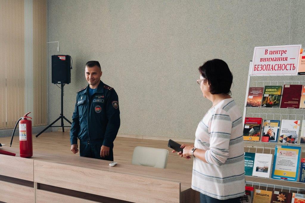 Для супрацоўнікаў бібліятэкі адбылася сустрэча з Аляксандрам Іванавічам Сычовым, першым намеснікам начальніка Брэсцкага абласнога ўпраўлення МНС. Аляксандр Іванавіч прывёў статыстыку аб гібелі людзей у выніку пажараў па вобласці і рэспубліцы, расказаў аб правілах карыстання пажарнымі вогнетушыцелямі і паводзінах пры пажары, а таксама адказаў на шматлікія пытанні.