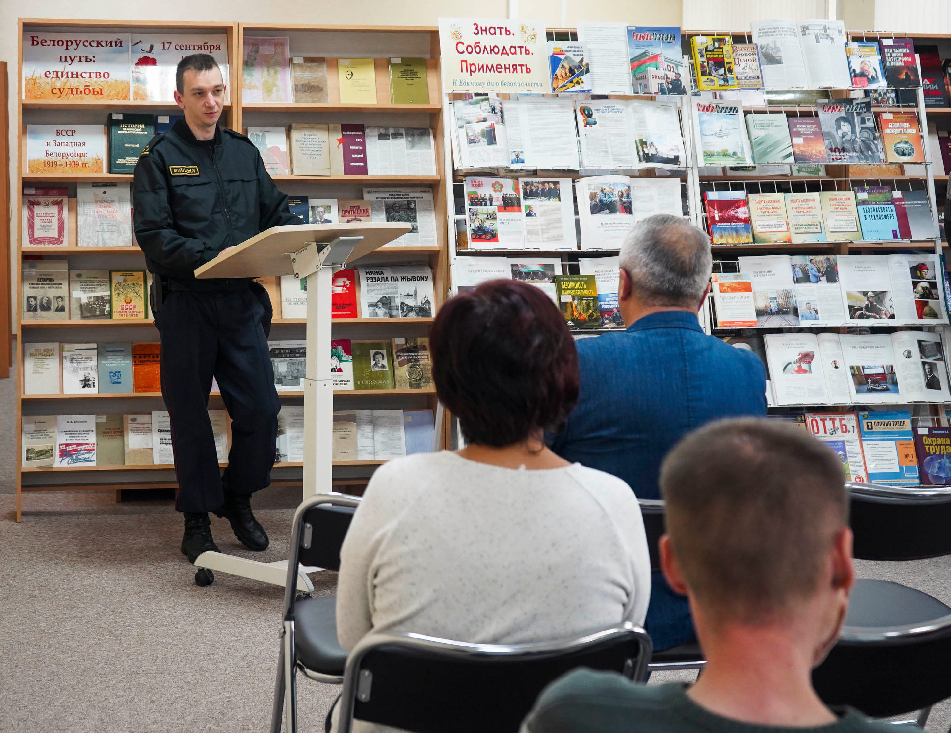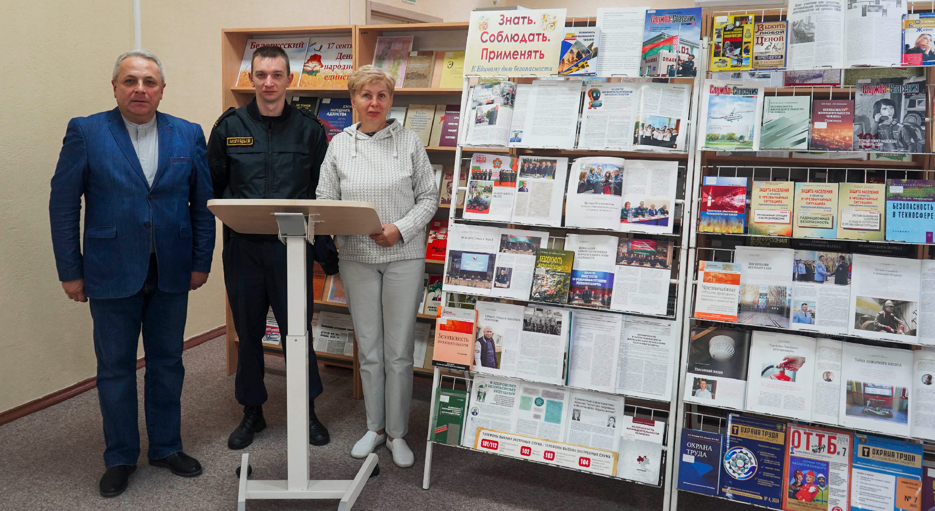 Загадчык аддзела перыядычных выданняў Людміла Іванаўна Сахарэвіч азнаёміла прысутных з матэрыяламі выставы «Ведаць. Выконваць. Прымяняць». Экспазіцыя ахоплівае тэмы аховы працы, бяспекі жыццядзейнасці чалавека і пытанні, звязаныя з надзвычайнымі сітуацыямі прыроднага, тэхнагеннага і сацыяльнага характару.