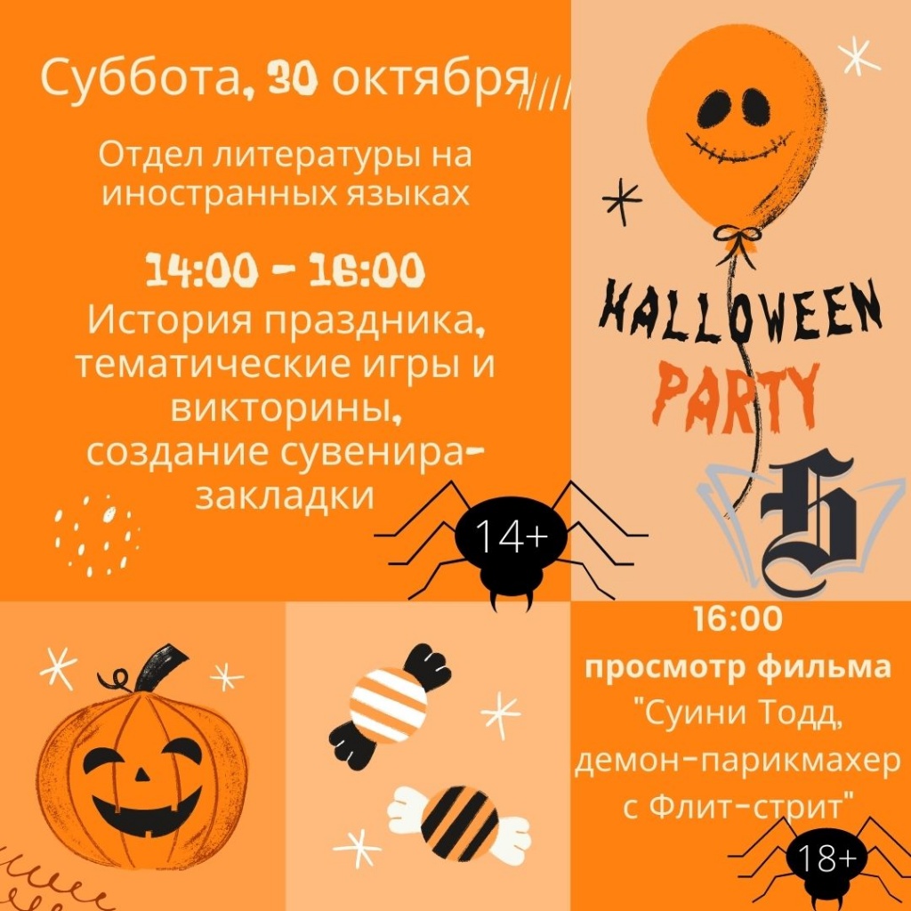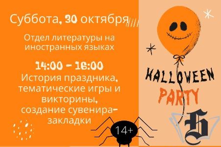 Аддзел літаратуры на замежных мовах Брэсцкай абласной бібліятэкі імя М. Горкага запрашае 30 кастрычніка ў 14:00 на Halloween Party!