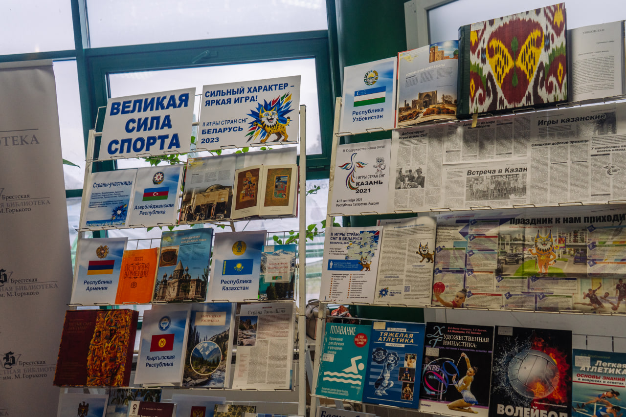 Брэсцкая абласная бібліятэка імя М. Горкага прымае ўдзел у правядзенні гульняў: у спарткомплексе «Вікторыя» ў дні спаборніцтваў удзельнікам, заўзятарам і гасцям горада прадстаўлены дзве выставы з фондаў бібліятэкі — «Генацыд у Беларусі: памяць не памірае» і «Вялікая сіла спорту».