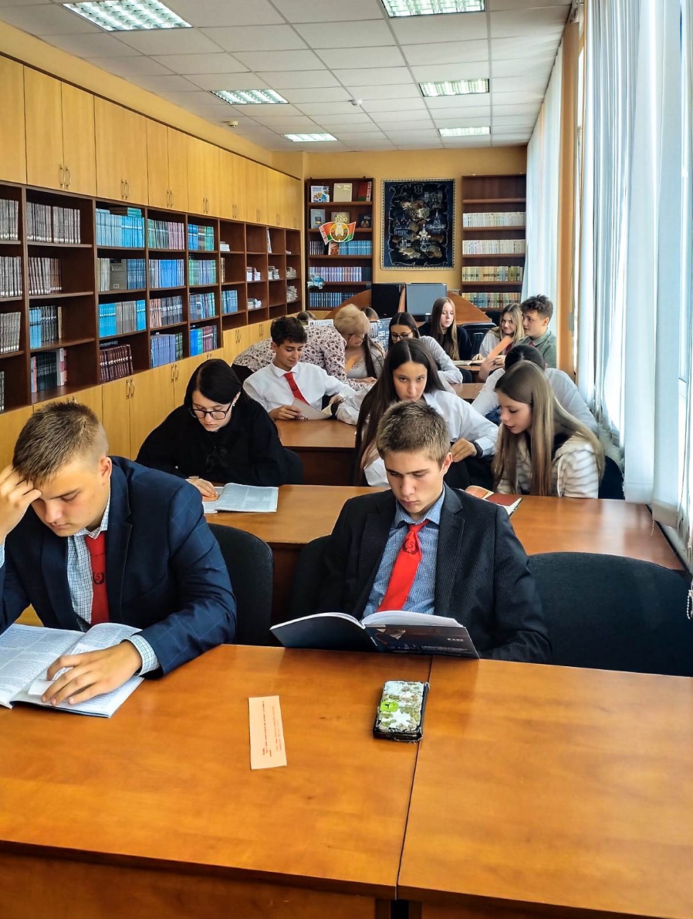 18 верасня 2024 г. у гімназіі № 5 г. Брэста загадчык аддзела перыядычных выданняў Брэсцкай абласной бібліятэкі імя М. Горкага Людміла Іванаўна Сахарэвіч правяла для навучэнцаў 9-х класаў пошукава-пазнавальны практыкум «Інтэлектуальная размінка» на тэму «Беларускія пісьменнікі: цікавыя гісторыі біяграфіі і творчасці».