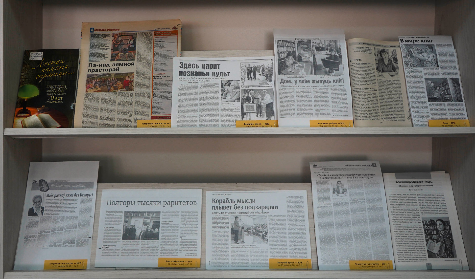 Экспазіцыя падрыхтавана па матэрыялах газет «Заря», «Вечерний Брест», «Брестский вестник», «Народная трыбуна», «Літаратура і мастацтва», таксама часопісаў «Бібліяпанарама», «Бібліятэчны свет», «Маладосць», «Нёман», «Беларусь».