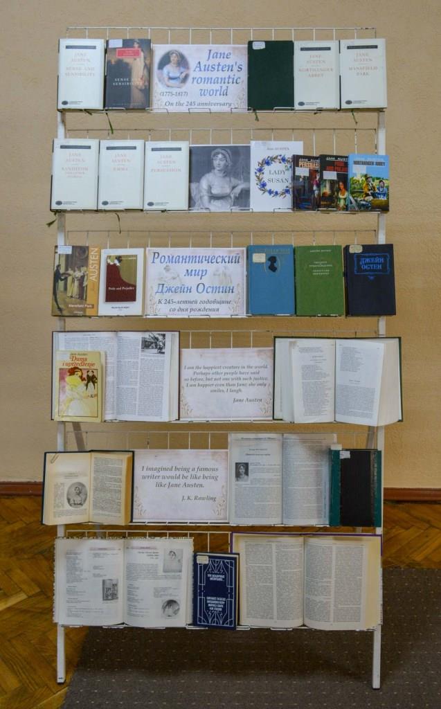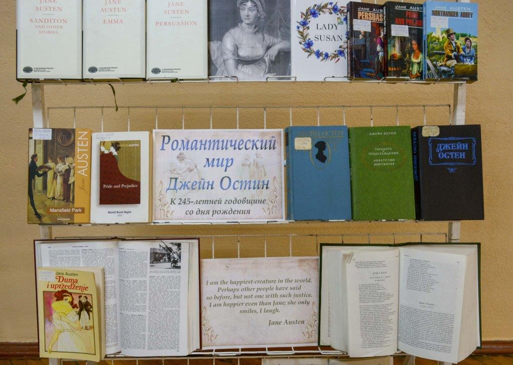 Кніжная выстава «Jane Austen’s romantic world» («Романтический мир Джейн Остин»), прысвечаная 245-гадоваму юбілею з дня нараджэння вядомай брытанскай пісьменніцы Джэйн Осцін, адкрылася ў аддзеле літаратуры на замежных мовах Брэсцкай абласной бібліятэкі імя М. Горкага.
