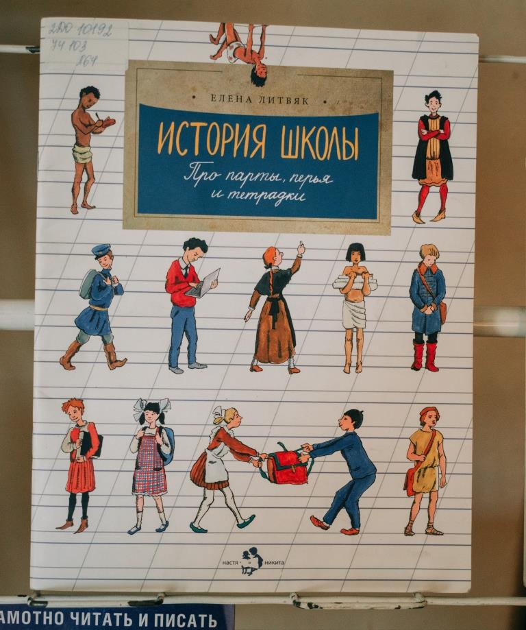 Яшчэ 100 гадоў таму не было дзённікаў, 200 гадоў таму ніхто не збіраў з раніцы партфель. Як жа тады вучыліся? Якія заданні былі ў першабытных дзяцей? На чым пісалі дзеці ў Месапатаміі, калі папера яшчэ не была вынайдзена? Кніга Алены Літвяк «История школы про парты, перья и тетрадки» дапаможа зазірнуць у школы ранейшых часоў і даведацца, што такое непралівайка, прамакатка і калі з’явіліся першыя шарыкавыя ручкі.