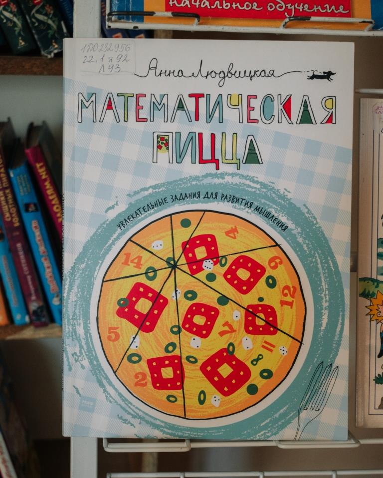 Матэматыка — яркая, поўная нечаканасцей навука. Яна развівае ўяўленне і прымушае чалавека думаць. У кнізе матэматыка і графіка Ганны Людвіцкай «Математическая пицца» досыць цікавых фактаў і займальных заданняў, каб дзіця пераканалася: матэматыка — выдатная забава, а можа, і свайго роду мастацтва. Пасядзеўшы над кнігай, дзеці навучацца вырошчваць бінарнае дрэва, маляваць карціны з дапамогай гульнявога кубіка, праектаваць матэматычны дыван, дапамогуць слімаку прайсці па стужцы Мёбіуса і нават намалююць немагчымую фігуру. Унутры шмат разнастайных заданняў: на маляванне, галаваломкі, кадзіраванне паведамленняў (інфарматыка), на працу з лічбамі і шмат іншага. Вось такая яна на смак, «Математическая пицца»!