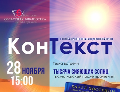 Удзельнікі чытацкага клуба «КанТэкст» за час яго існавання абмяркоўвалі самыя разнастайныя тэмы. А вось чарговую сустрэчу вырашылі прысвяціць не тэме, а канкрэтнай кнізе — «Тысяча сияющих солнц» Халеда Хасейні.