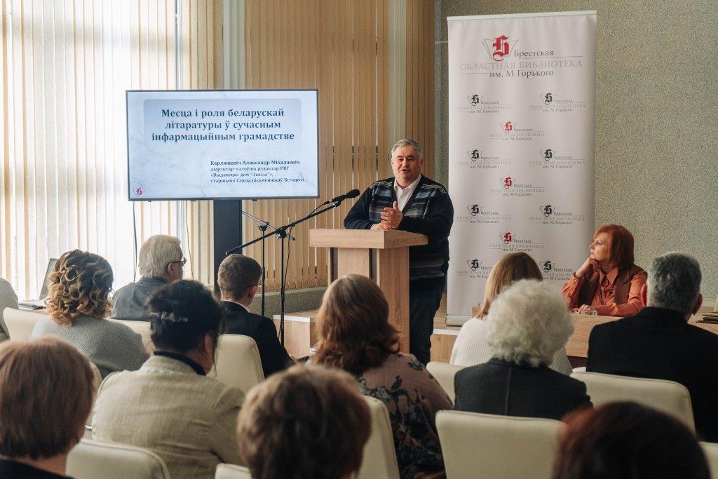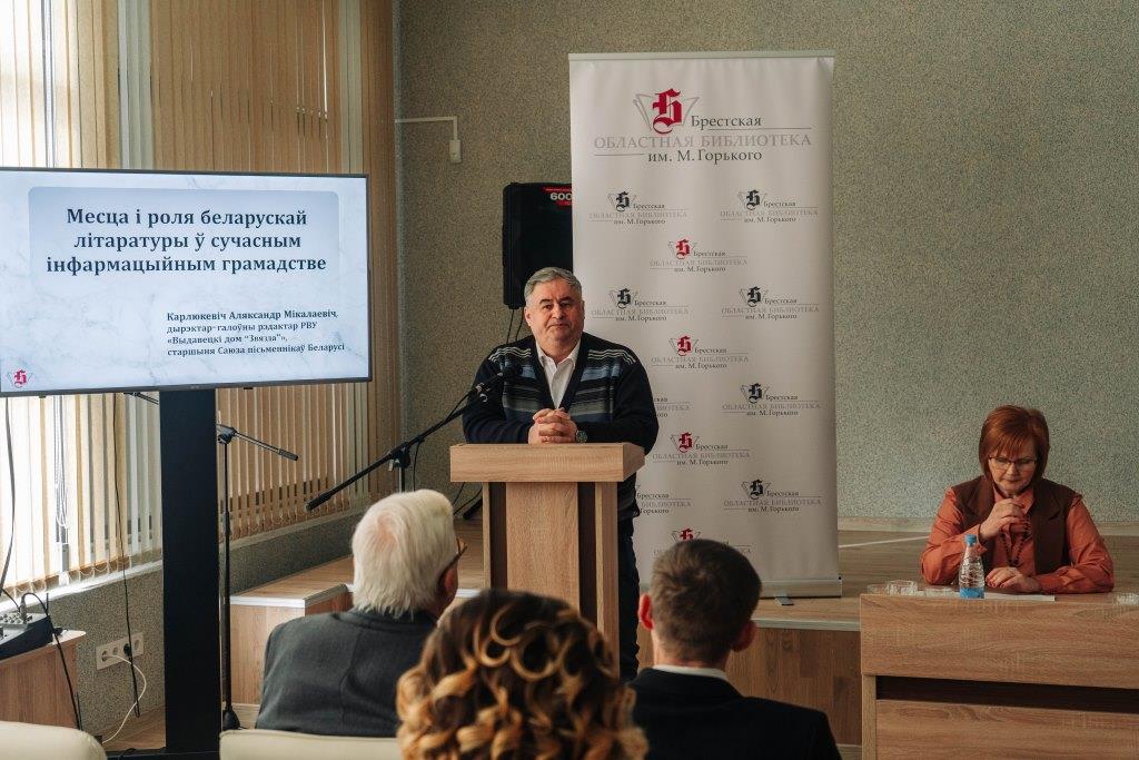 27 лютага 2023 г. у Брэсцкай абласной бібліятэцы імя М. Горкага адбыўся круглы стол «Сучасная беларуская кніга: тэндэнцыі развіцця і сродкі распаўсюджвання» з удзелам галоўнага рэдактара аднаго з найбуйнейшых рэспубліканскіх выданняў — газеты «Звязда», дырэктара–галоўнага рэдактара выдавецкага дома «Звязда» і старшыні Саюза пісьменнікаў Беларусі Аляксандра Мікалаевіча Карлюкевіча. Ён выступіў з дакладам аб месцы і ролі беларускай літаратуры ў сучасным інфармацыйным грамадстве.