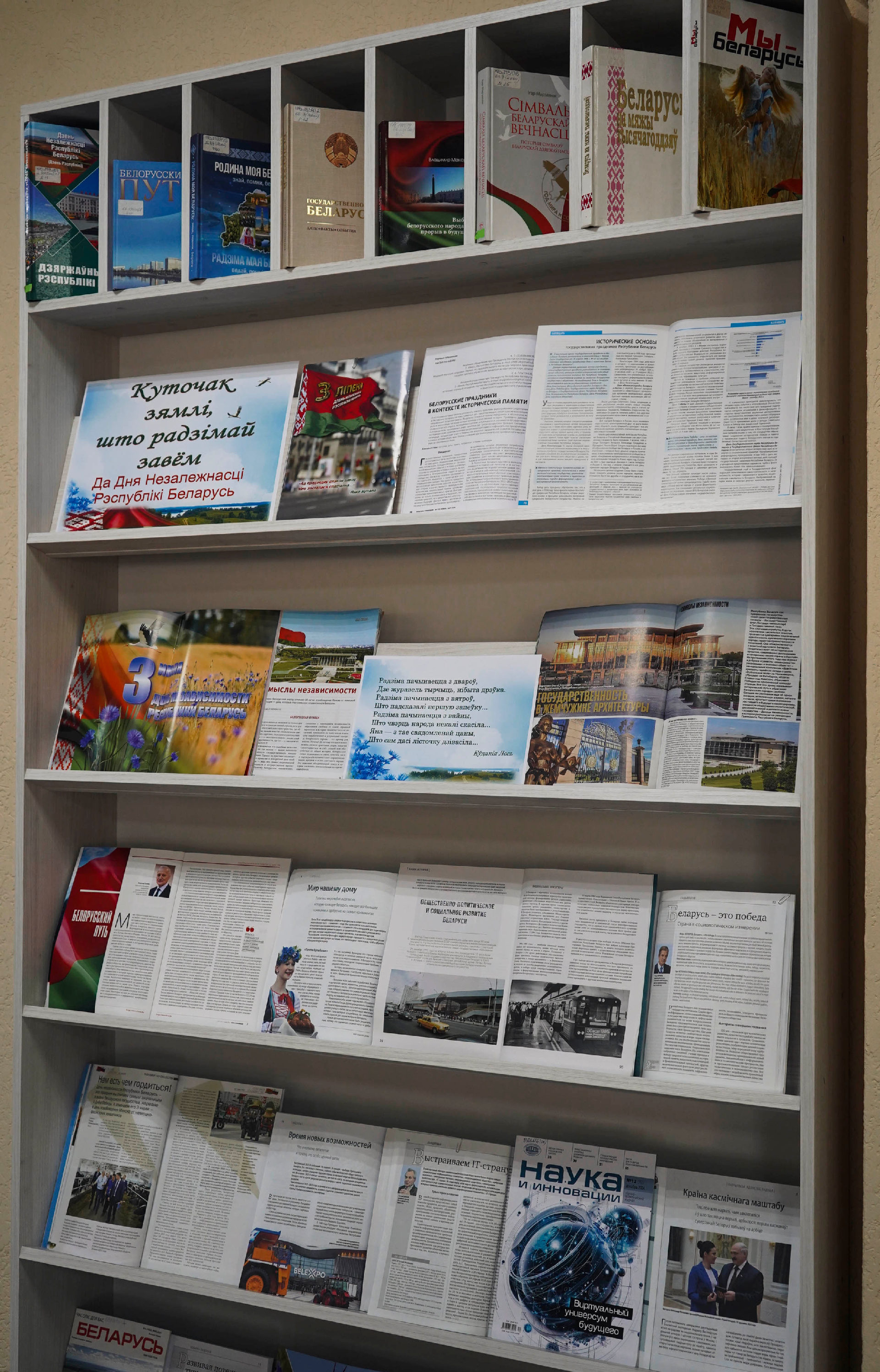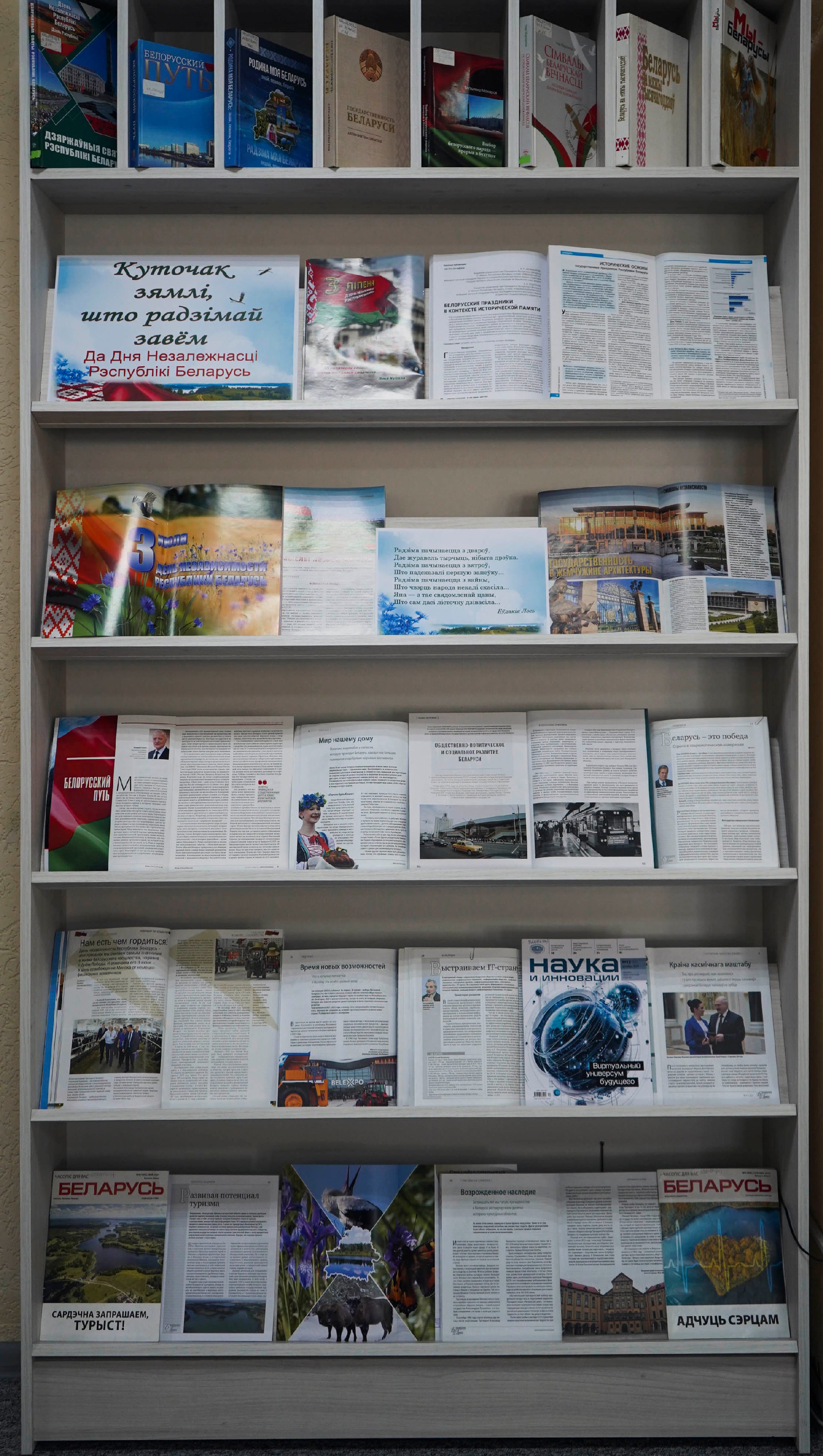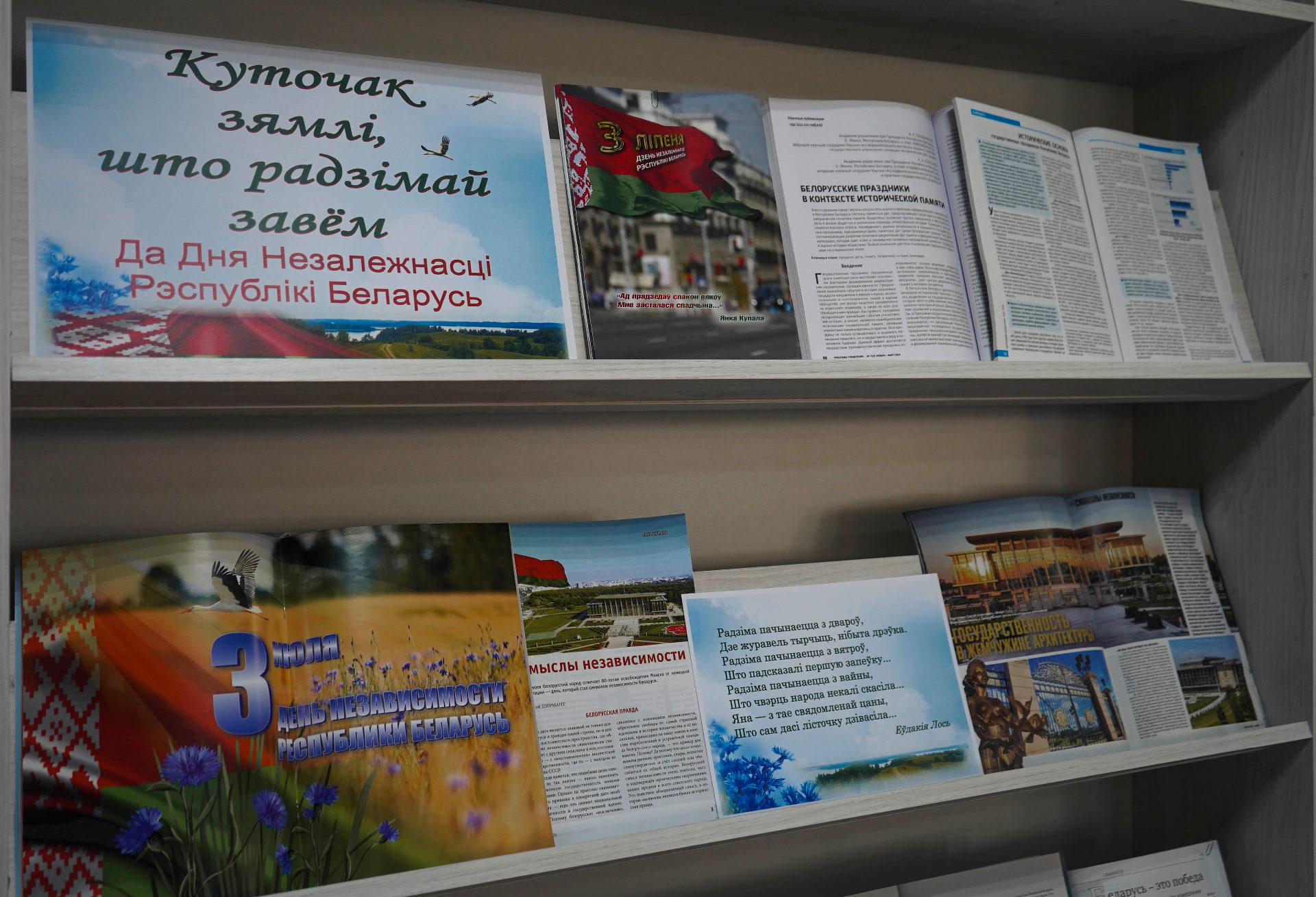 На экспазіцыі прадстаўлены матэрыялы аб гісторыі дзяржаўнасці Беларусі, значэнні Дня Незалежнасці для краіны, а таксама публікацыі аб жыцці і дасягненнях беларускага народа ў сучасным свеце.