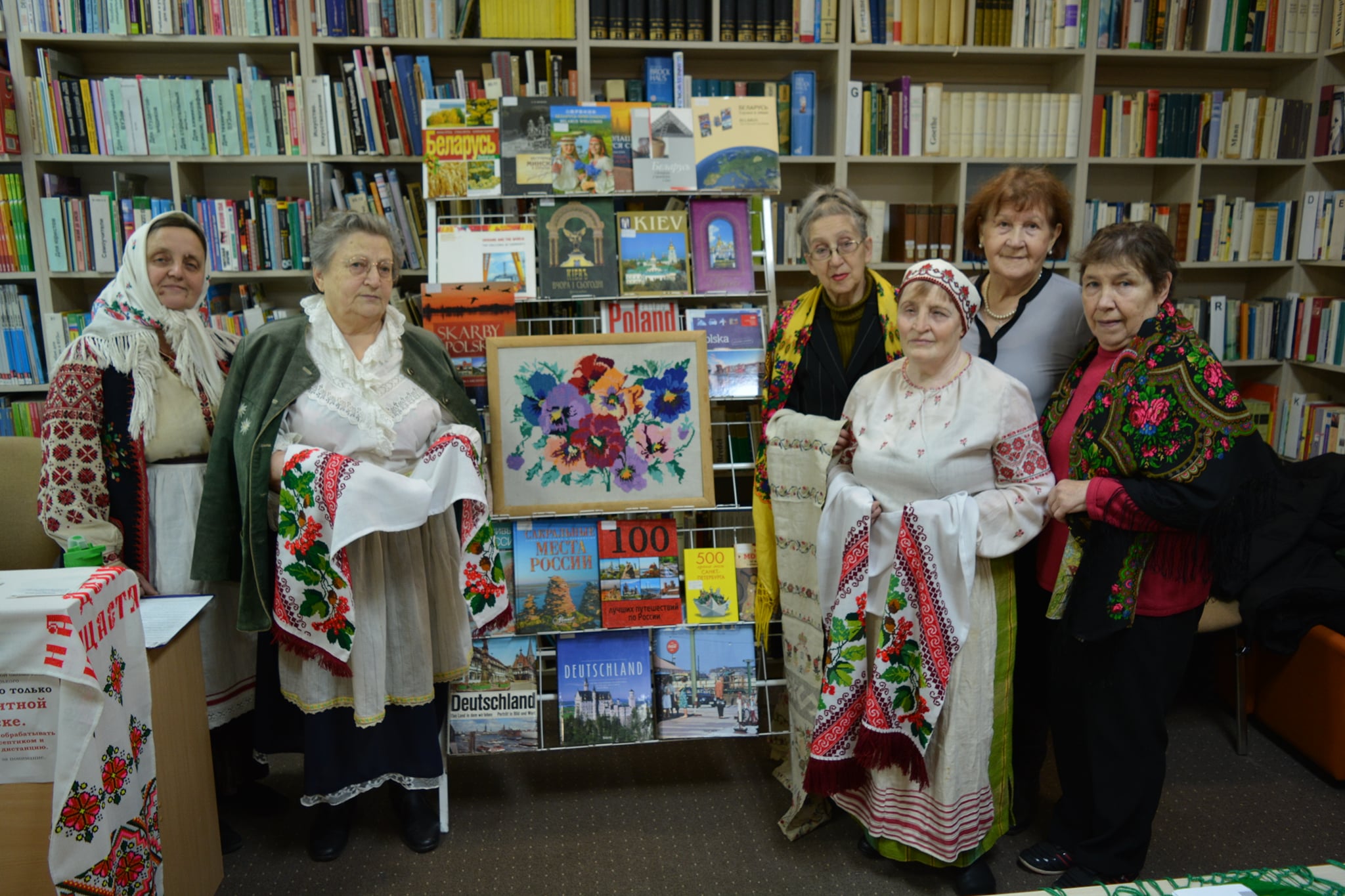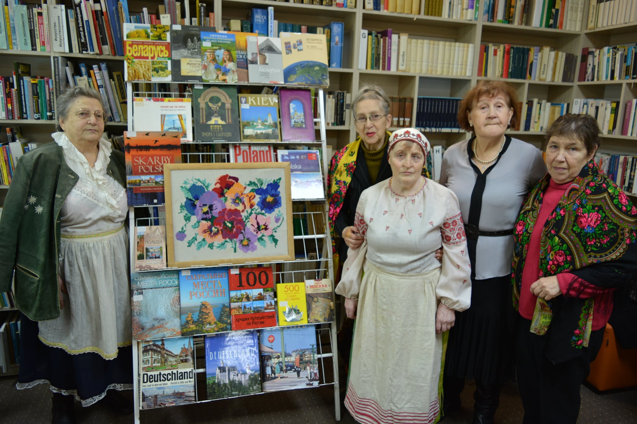 У аддзеле выданняў на замежных мовах ўдзельнікі Клуба інтэлектуальнага развіцця 50+ зладзілі цёплую сустрэчу, прысвечаную культуры і традыцыям розных краін: на сустрэчы гучалі беларуская, украінская, руская, польская і нямецкія мовы. У атмасферы дабрыні і сяброўскай падтрымкі дзяліліся каштоўнасцямі і разглядалі сямейныя рэліквіі: старажытныя вышыванкі, лялькі, вышытыя карціны, плеценыя паясы і інш. Кожнага з удзельнікаў аб’ядноўвалі любоў да роднай мовы, культуры і традыцый свайго народа, павага да суседзяў і адно аднаго.
