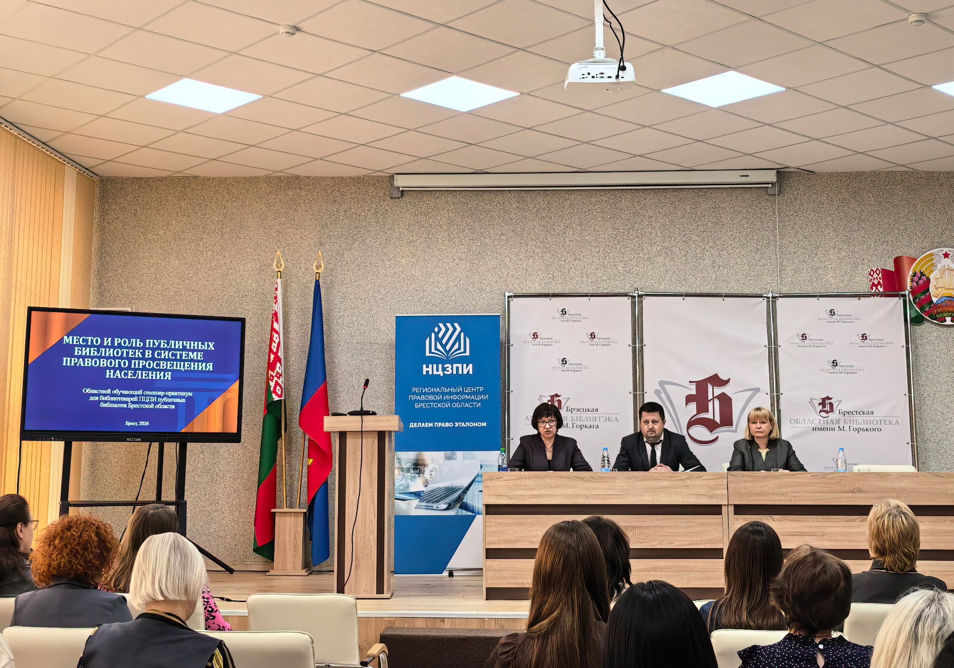 26 сакавіка 2026 г. у Брэсцкай абласной бібліятэцы імя М. Горкага адбыўся абласны навучальны семінар-практыкум «Месца і роля публічных бібліятэк у сістэме прававой асветы насельніцтва». У семінары прынялі ўдзел спецыялісты Нацыянальнай бібліятэкі Беларусі, Рэгіянальнага цэнтра прававой інфармацыі Брэсцкай вобласці і бібліятэчныя работнікі, якія арганізуюць работу публічных цэнтраў прававой інфармацыі ў публічных бібліятэках вобласці.