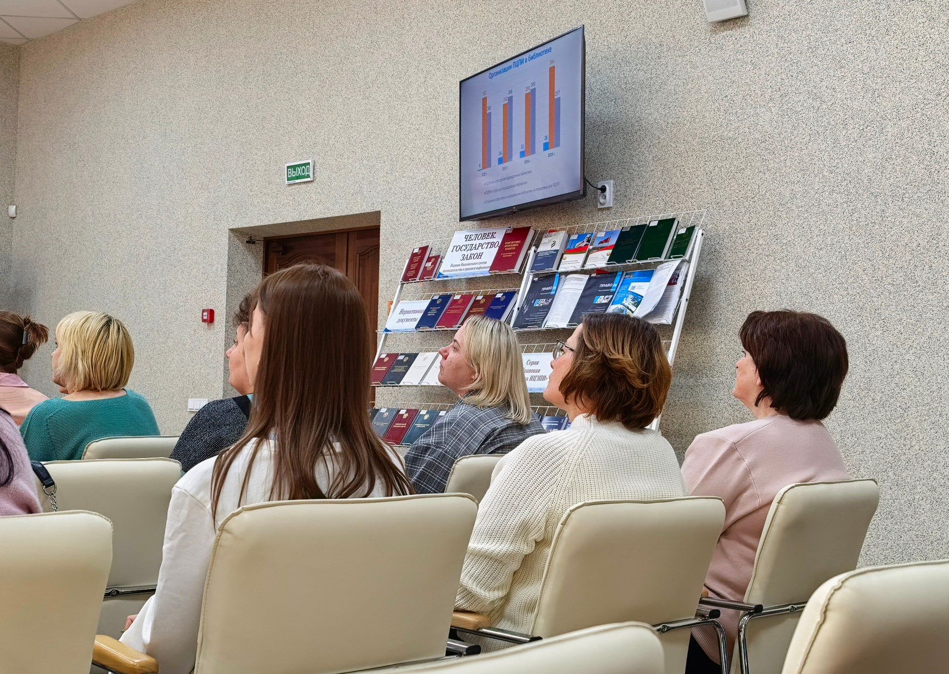 Для ўдзельнікаў семінара была праведзена экскурсія па абласной бібліятэцы, падчас якой адбылося знаёмства з зонай ПЦПІ ў структуры агульнай чытальнай залы.