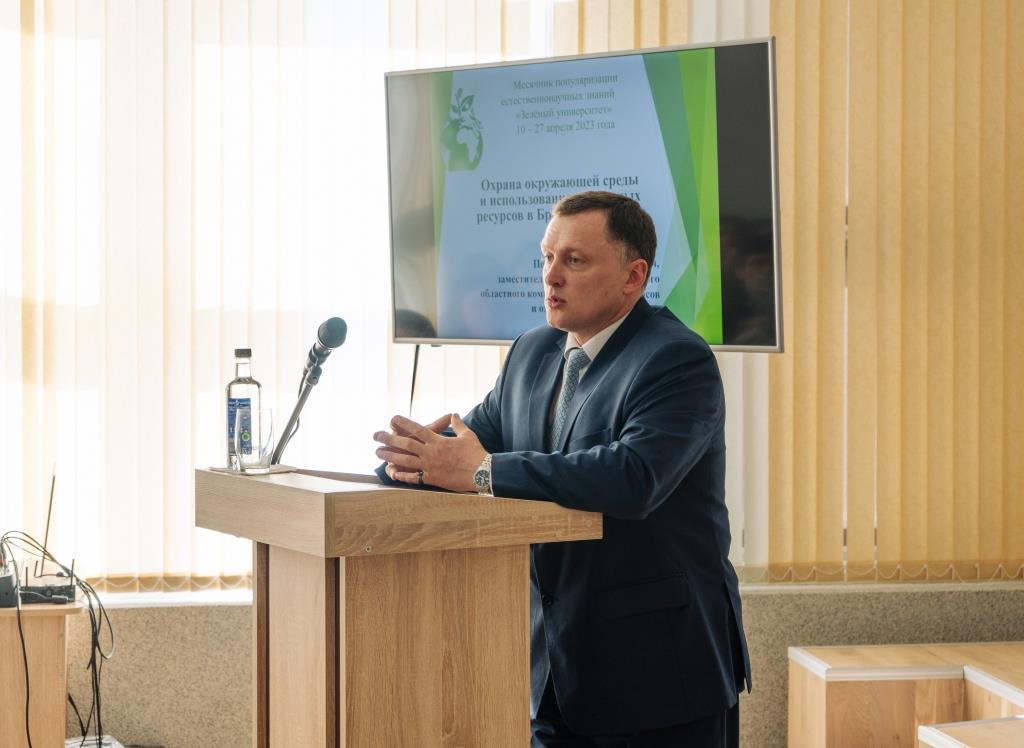 Госць распавёў аб глабальных экалагічных выкліках сучаснасці; стане прыроднага асяроддзя і актуальных праблемах прыродакарыстання ў Брэсцкай вобласці; экалагічных праектах, што рэалізуюцца ў рэгіёне; адказаў на пытанні слухачоў — выкладчыкаў і студэнтаў факультэта прыродазнаўства БрДУ ім. А. С. Пушкіна на чале з дэканам А.А. Сідаровічам.